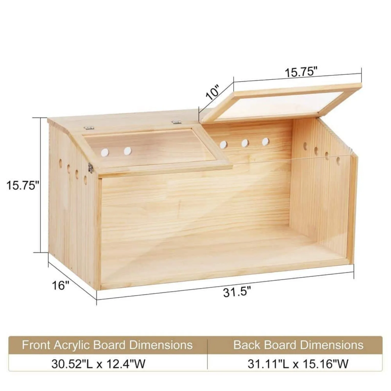 - Front Acrylic Board Dimensions: 30.52 in. L x 12.4 in. W
