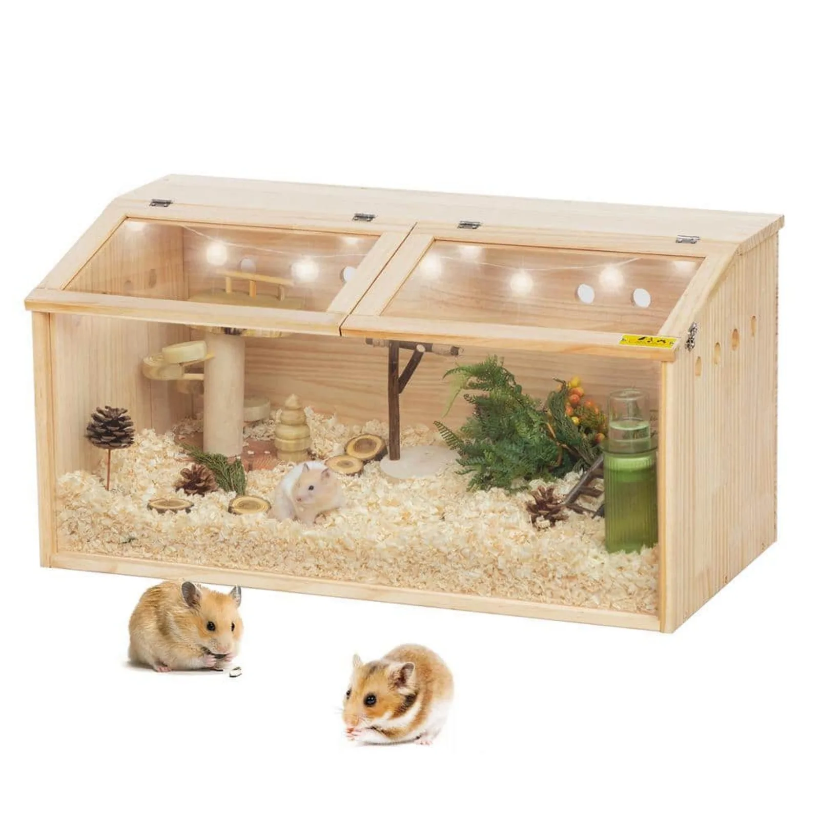 - Premium Material: Made of high-grade solid wood, this cage is stable and prevents accidental ingestion. The transparent acrylic board allows close, multi-angle observation and interaction with your hamster.
