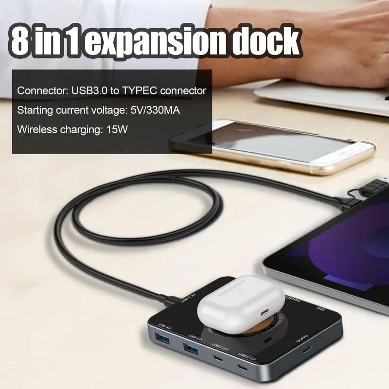 USB C Hub 8-in-1 w/ Wireless Charger Dock