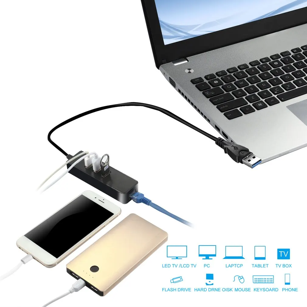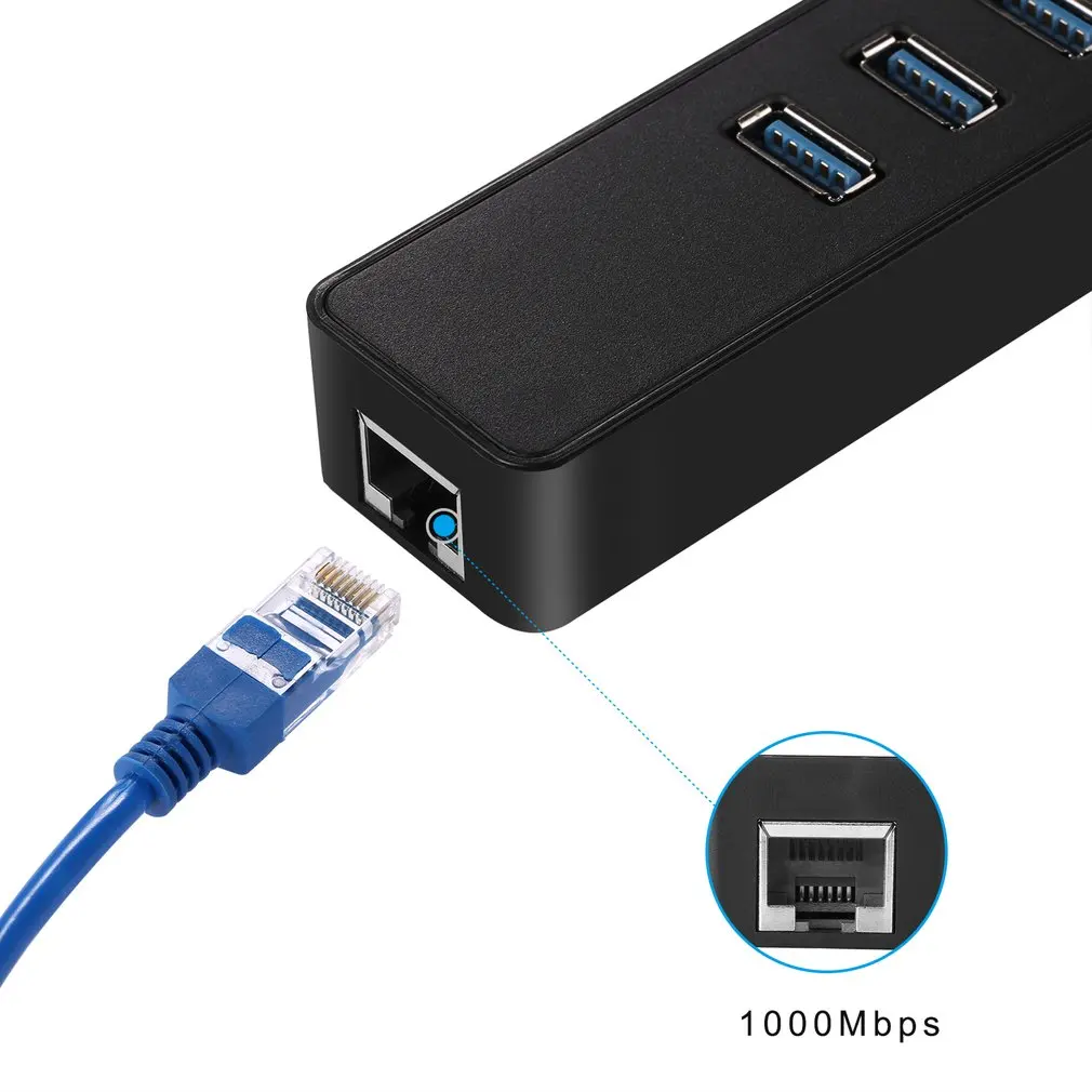 USB HUB 1000Mbps 3-Port USB 3.0 Ethernet Adapter