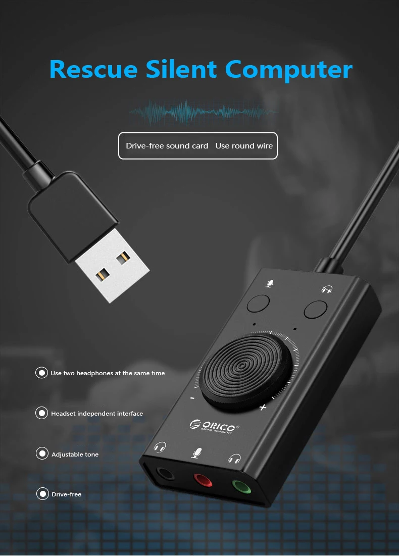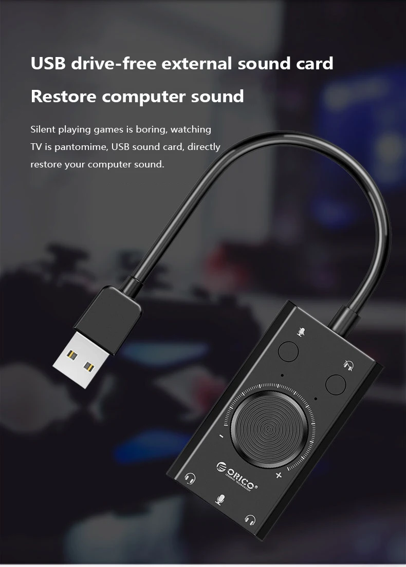 USB Sound Card Adapter with Mic & Volume