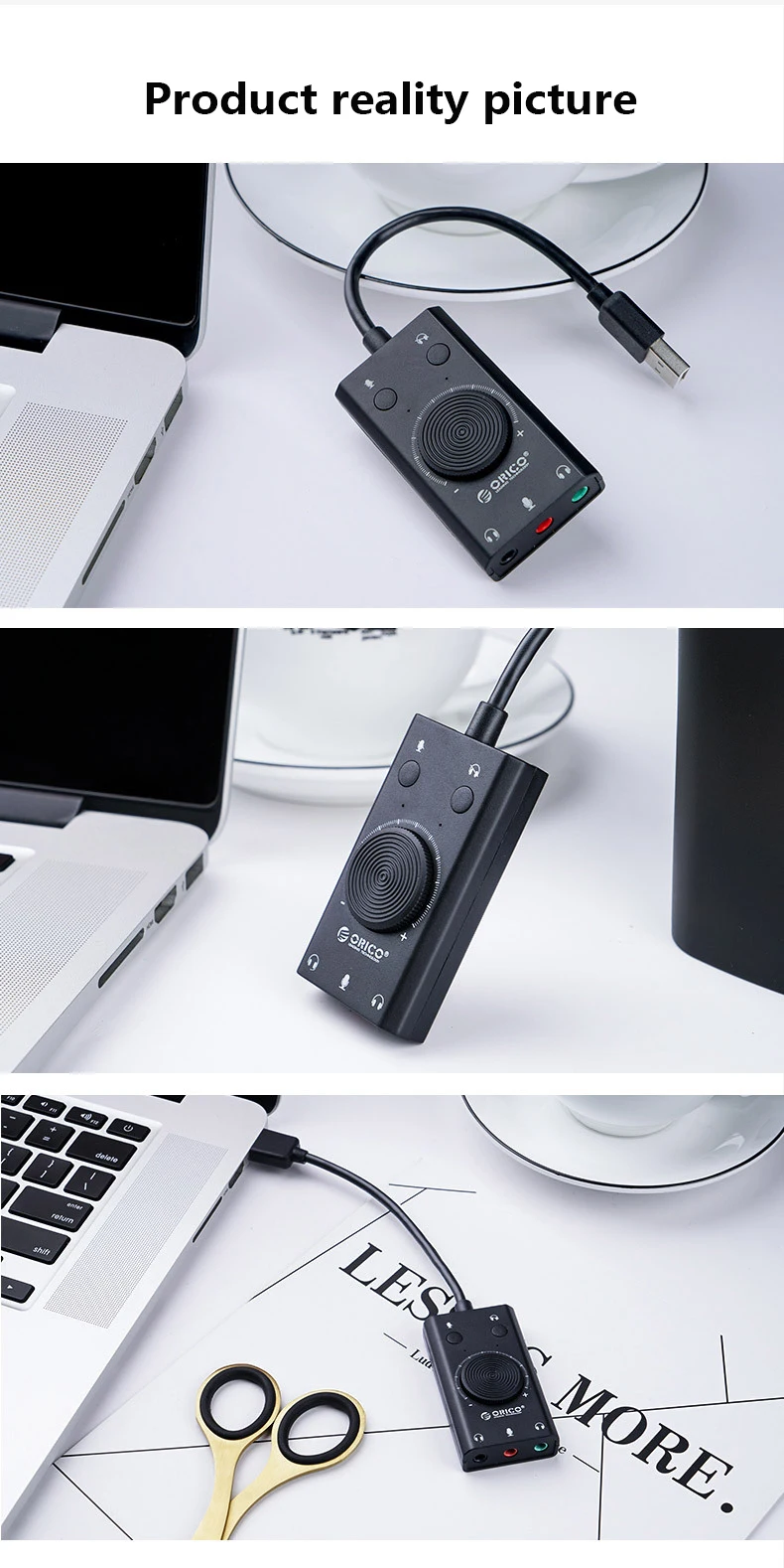 Multiple Output Ports: It offers three output ports via a single USB connection, expanding the connectivity options for various audio devices.