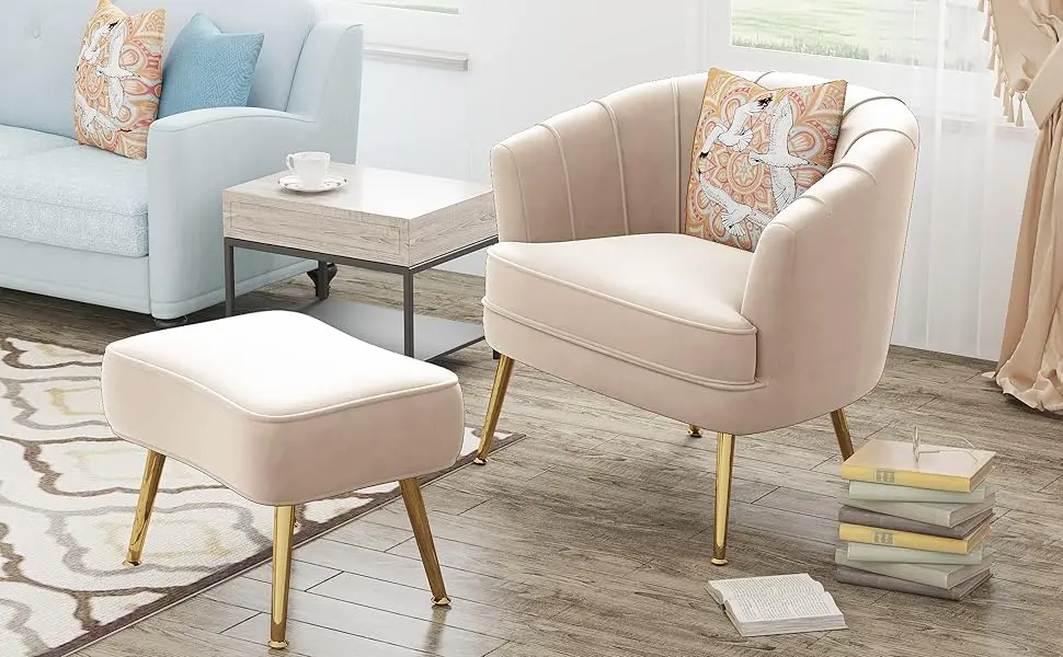 What makes the Velvet Accent Chair with Ottoman unique? The combination of its luxurious velvet fabric, modern design, and the added comfort of an ottoman sets it apart.
