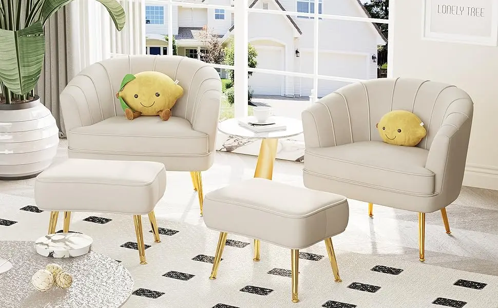Enhance your living space with the luxurious and stylish Velvet Accent Chair with Ottoman, a perfect blend of comfort and elegance. This exquisite piece is not just a chair; it’s a statement of sophistication and a testament to modern design.