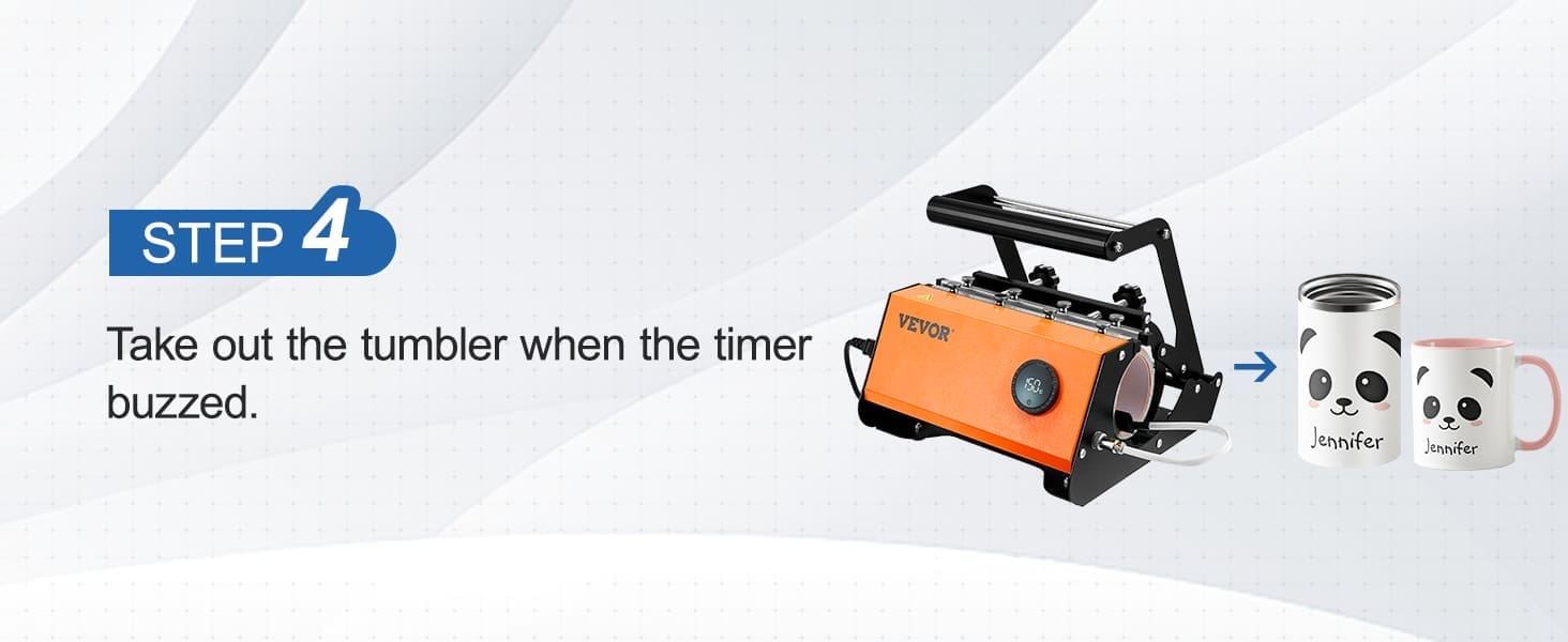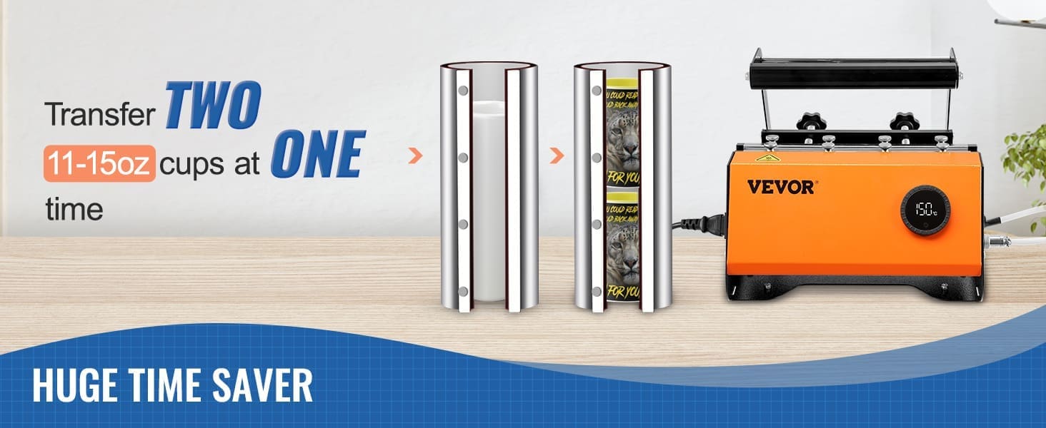 30oz Extra-large Capacity: Our tumbler heat press machine covers the mug surface fully from 11oz to 30oz, overcoming the defects of cup heat presses that have limited transfer range and uncovered areas. You can also print 2 pieces of 11-15oz straight mugs or cups simultaneously. Applicable cup volume: 11-30oz. Cup Diameter: 2.87-3.42in / 7.3-8.7cm. Maximum Cup Height: 9.8in / 25cm.