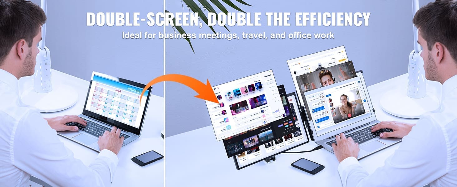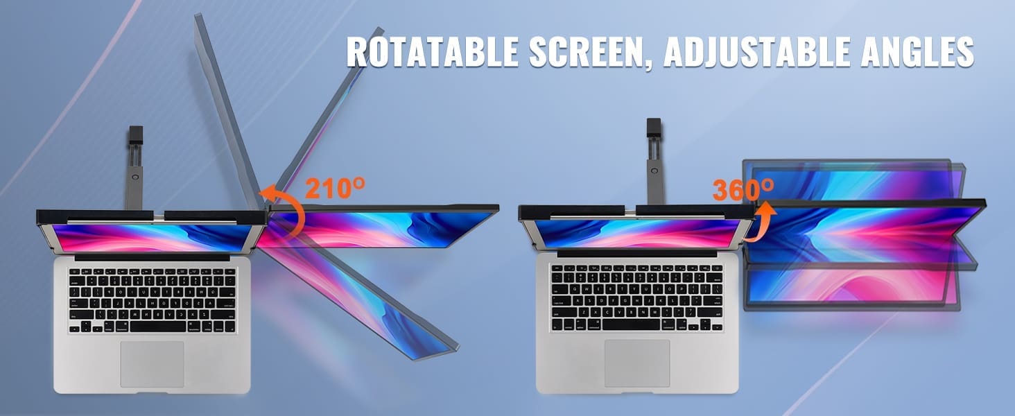 Versatile Applications: This lightweight screen extender attaches directly to your laptop, enabling dual-screen work setups anywhere. The screen rotates freely up to 210°, ideal for business meetings, travel, office work, remote education, and entertainment. Weighing just 2.6 lbs, it is easy to carry in a bag, perfect for video conferences, office presentations, homework, or business trips.