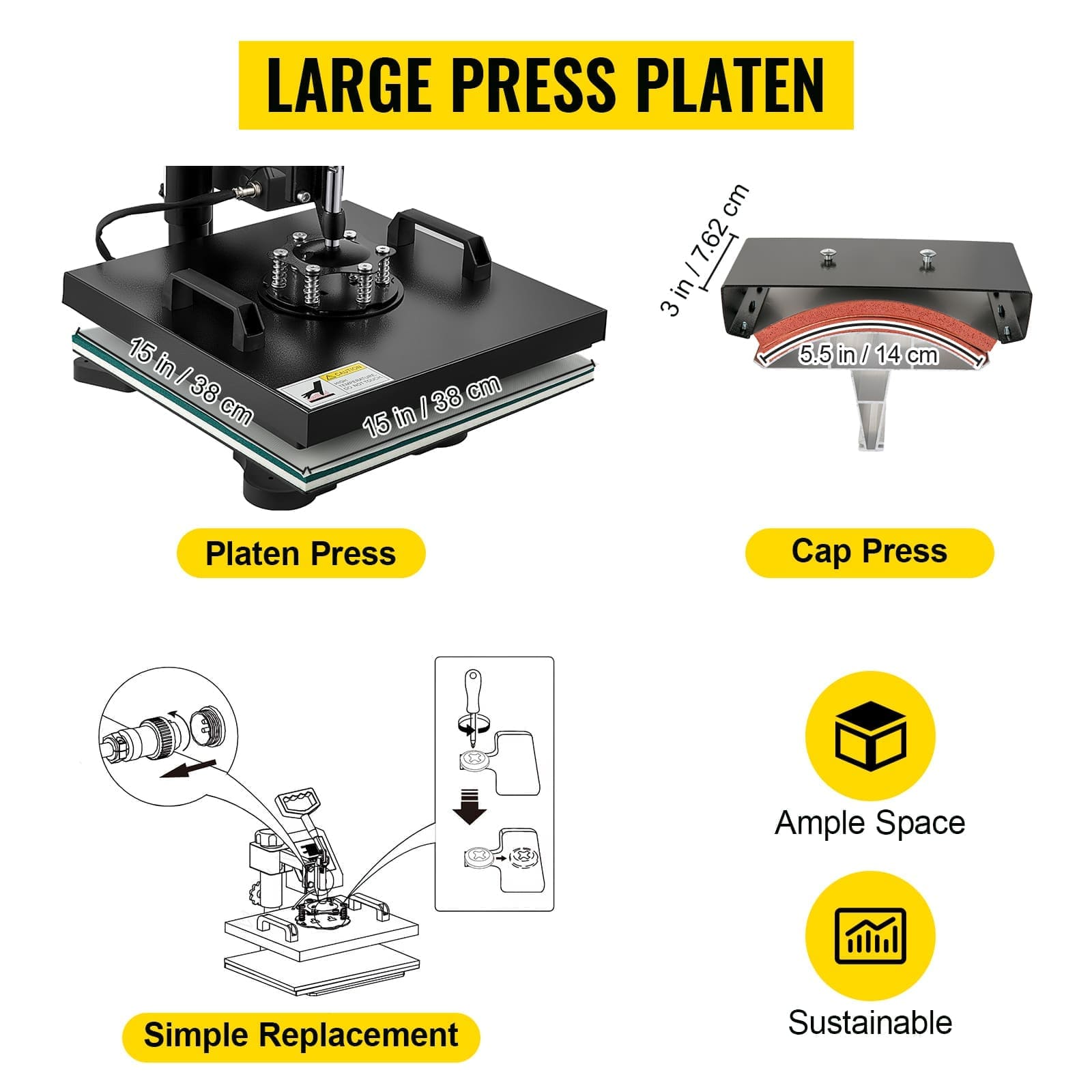VEVOR 2-in-1 Heat Press Machine 15×15-Inch Multifunctional