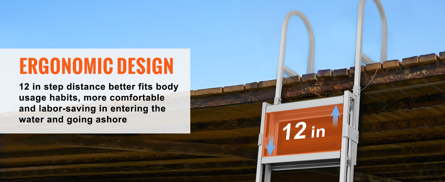 - Ergonomic Design: The 12-inch step distance better fits body usage habits, making it more comfortable and labor-saving for you to enter and exit the water. The thickened round handrails provide a comfortable grip.