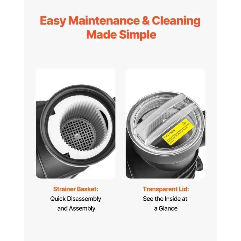 - Easy to Clean and Maintain: Our sand filter pump system includes a filter basket that can effectively filter impurities and can be easily disassembled and assembled. With a transparent cover, you can visually observe the internal status for timely maintenance.