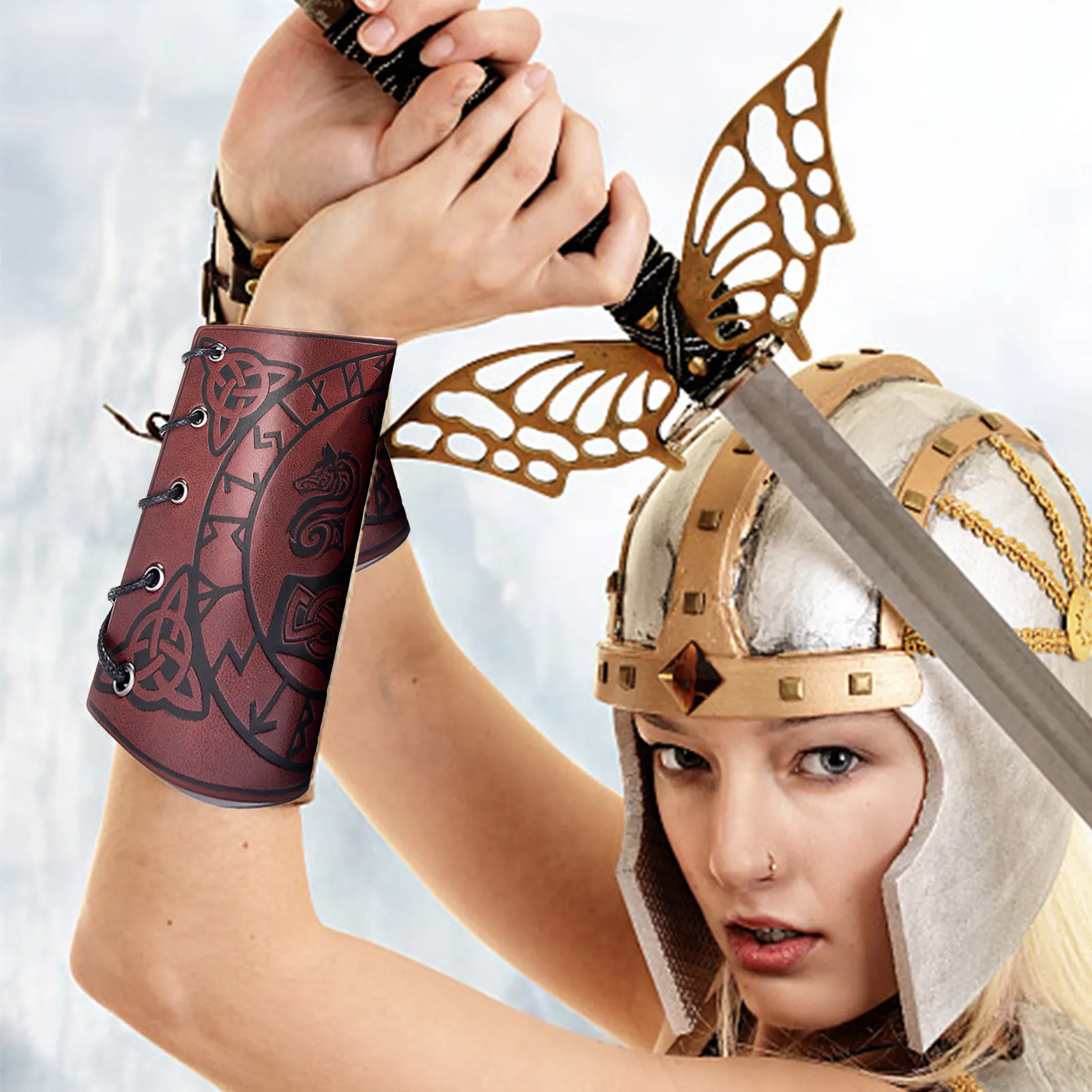 Viking Leather Arm Bracers for Cosplay – Embossed Design