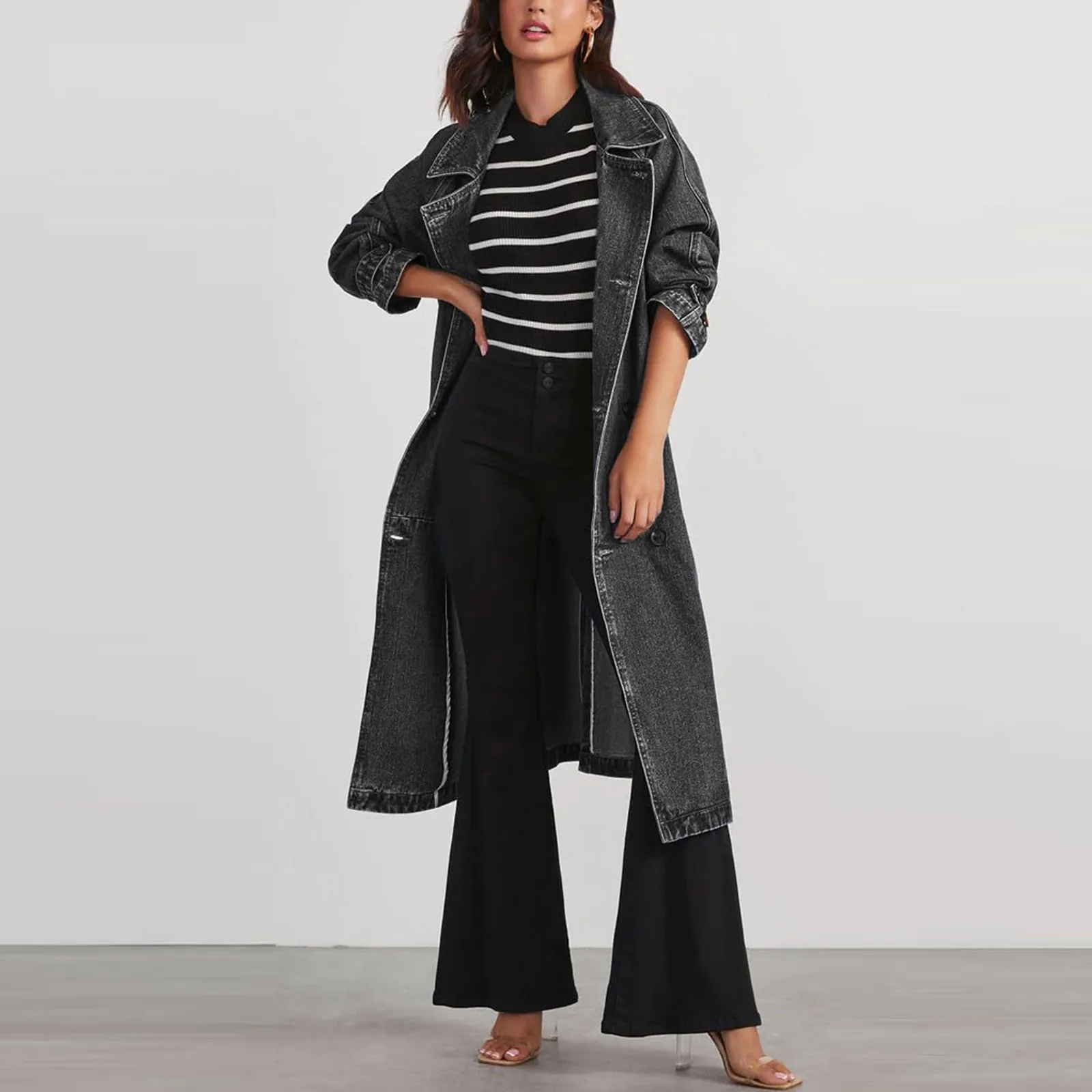 Material & Quality: This oversized trench coat with a belt is made of high-quality, sturdy, and comfortable denim fabric. It showcases a unique personal charm and creates a fitted visual effect. Available in solid colors: black and denim blue.