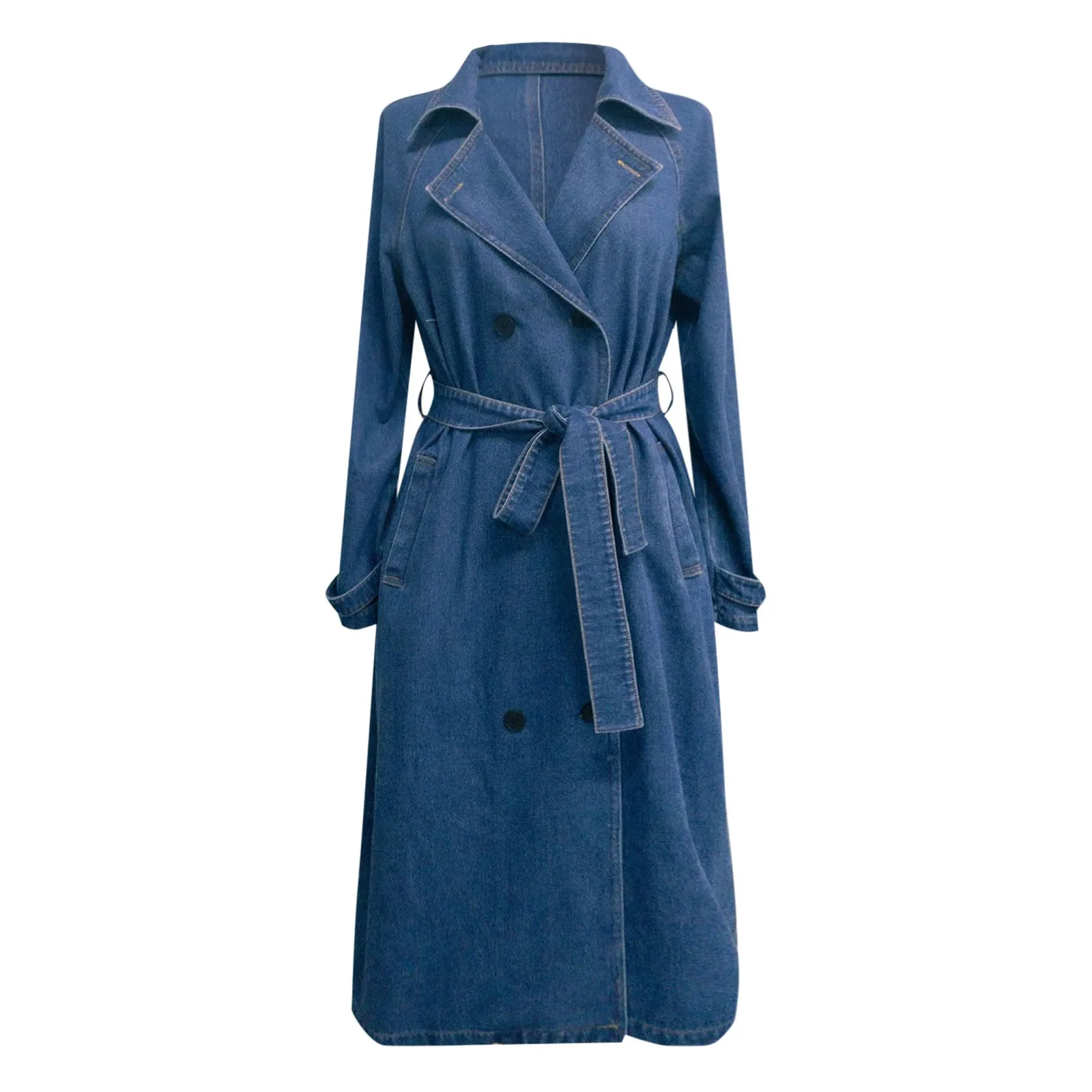 Product Name: Women’s Vintage Midi Long Jean Jacket Loose Fit Double Breasted Denim Jacket Trench Coat with Belt.