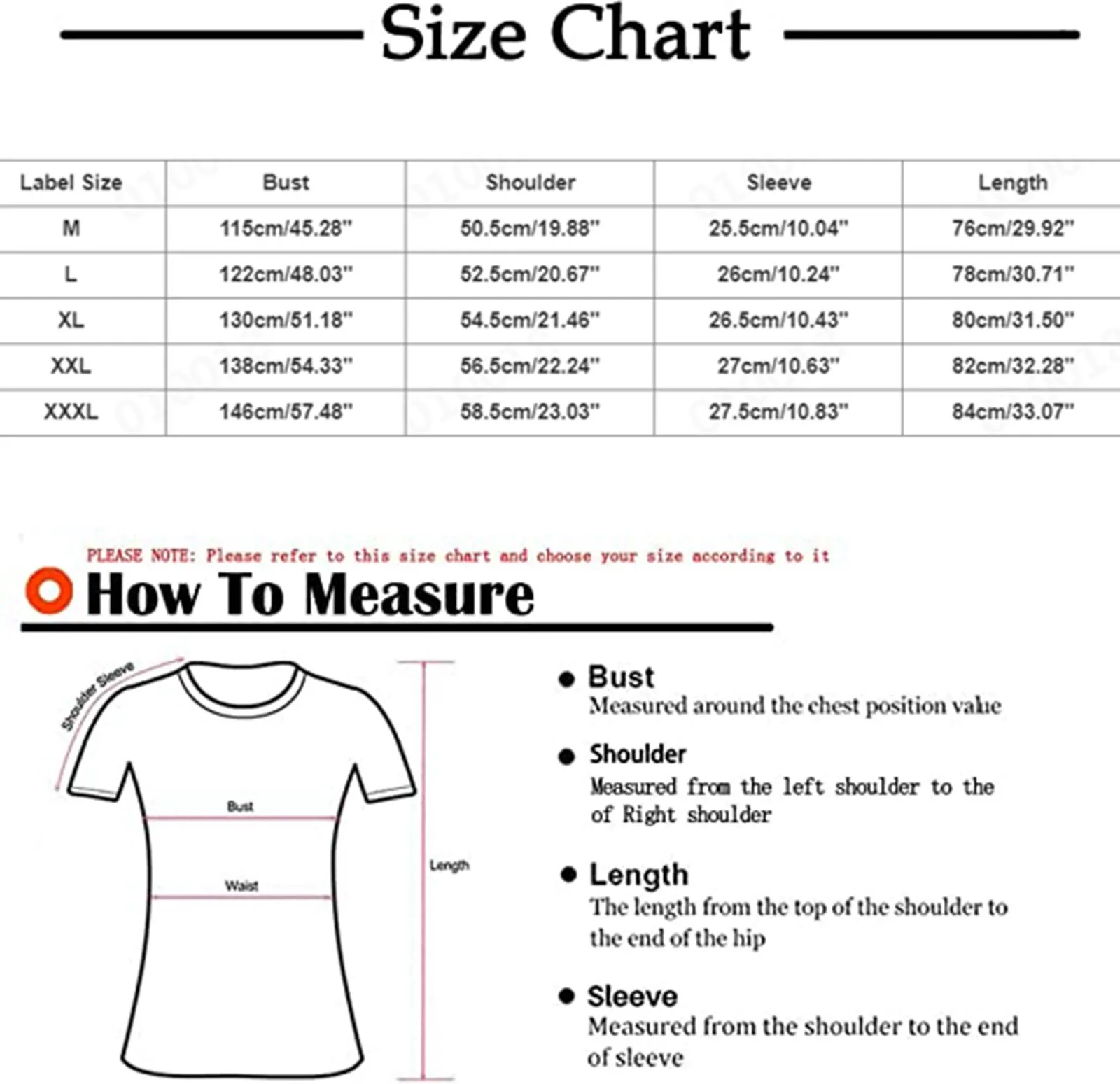 - XXXXL: US: 22, UK: 26, EU: 52, Bust: 154cm/60.63″, Shoulder: 60.5cm/23.82″, Sleeve: 28cm/11.02″, Length: 86cm/33.86″