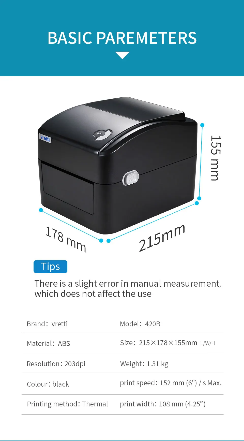 - Direct Thermal Printing: There is no need for ink or toner—this printer uses direct thermal technology to save costs and simplify maintenance.