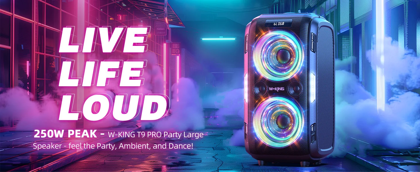 Bluetooth 5.3 & True Wireless Stereo: The T9 PRO wireless speaker adopts the latest Bluetooth 5.3, which enables faster and more stable connections even in large gatherings, ceremonies, speeches, and concert environments. Wirelessly pair 2 PRO Party Large speakers to instantly form a massive cinema-level dual stereo audio experience, making the sound louder and wilder. Whether it is a backyard barbecue, gathering, or live performance, T9 PRO is the ultimate audio speaker.