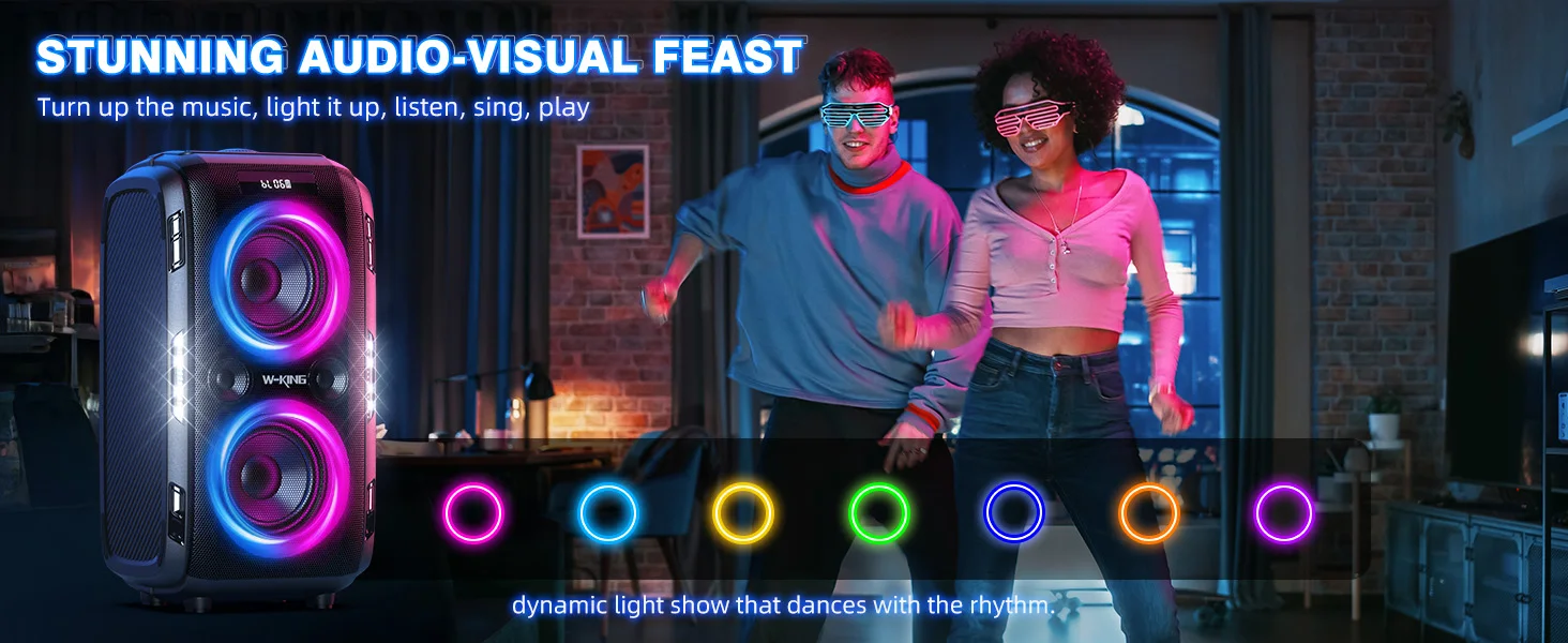 Colorful Beat Lights & All-Day Party: Make your party exciting and instantly light it up with T9 PRO! Press the light button to easily customize the party atmosphere. The high-brightness strobe light creates a stunning visual impact. The dynamic light show makes your party dazzling. Combined with the iconic sound effects of T9 PRO, it elevates the party’s audio-visual experience. The extra-large battery capacity ensures your music needs are met all day. Immerse yourself in non-stop musical bliss.