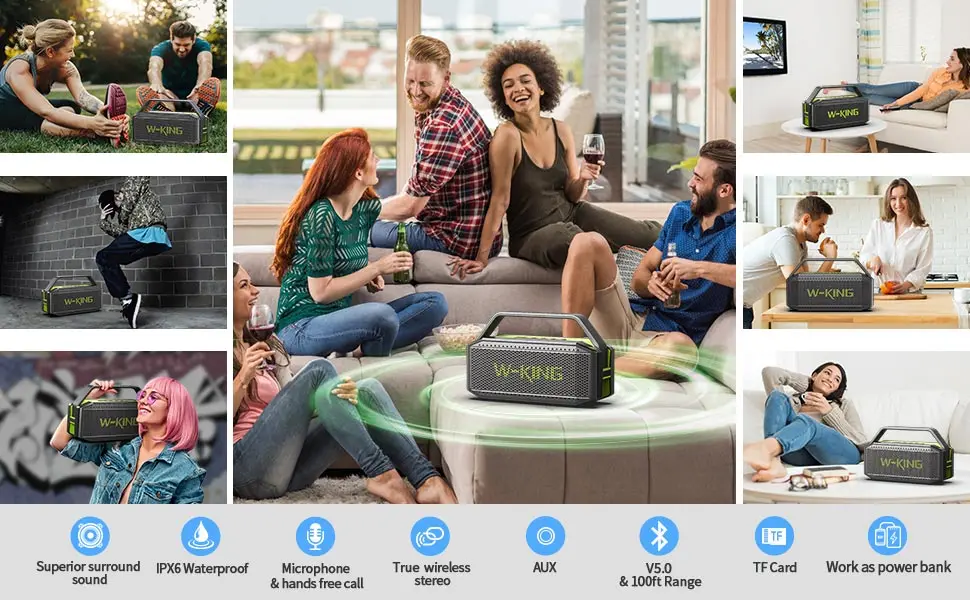 W-KING 60W Portable Bluetooth Speaker Loud