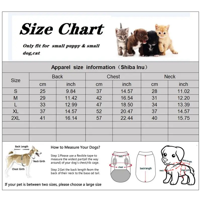 - XL – Back: 37cm / 14.57″, Chest: 52cm / 20.47″, Neck: 37cm / 14.57″
