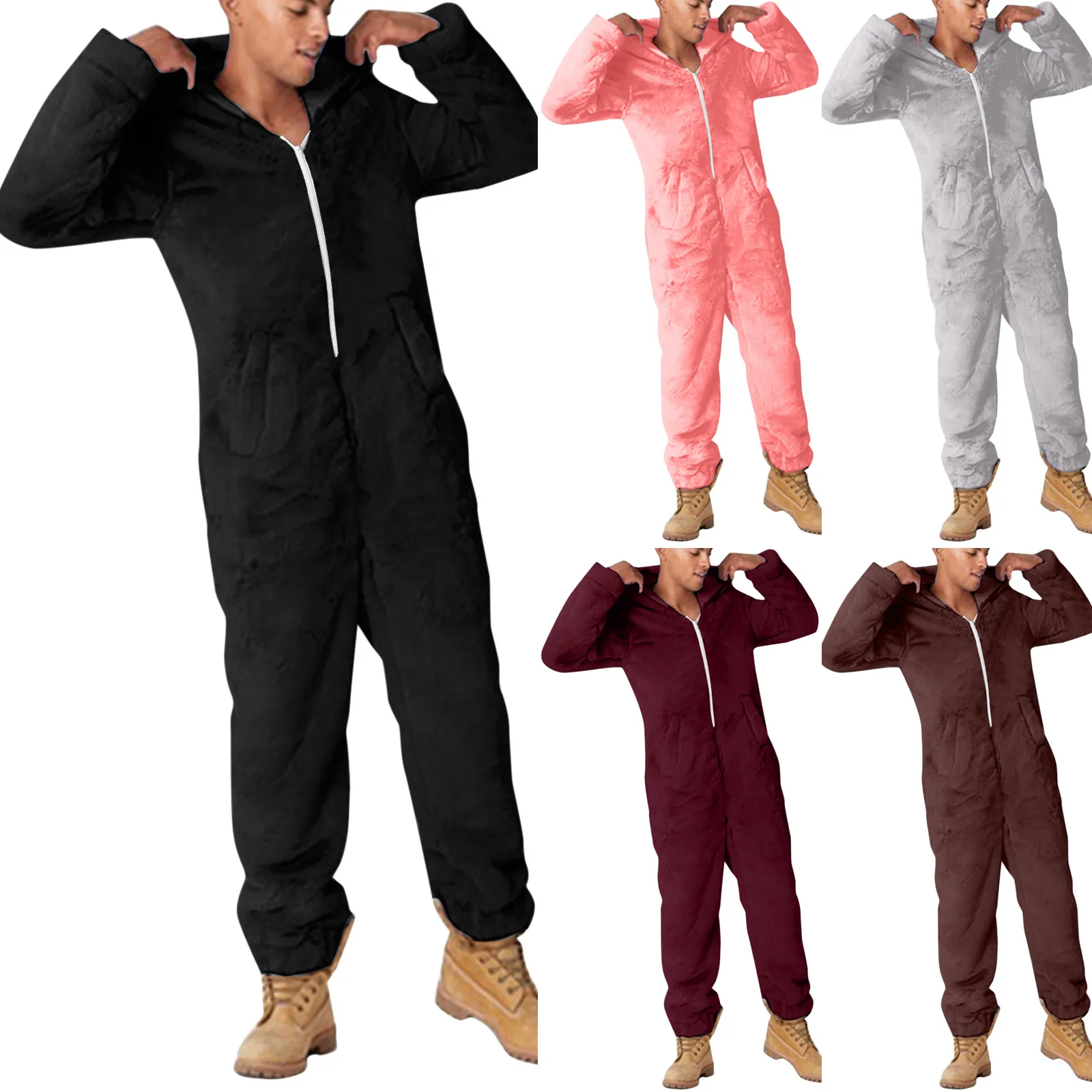 Warm Hooded Zip Jumpsuit Pajamas for Men