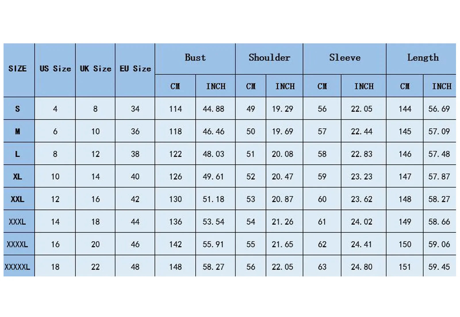 - Bust: 114 cm / 44.88”