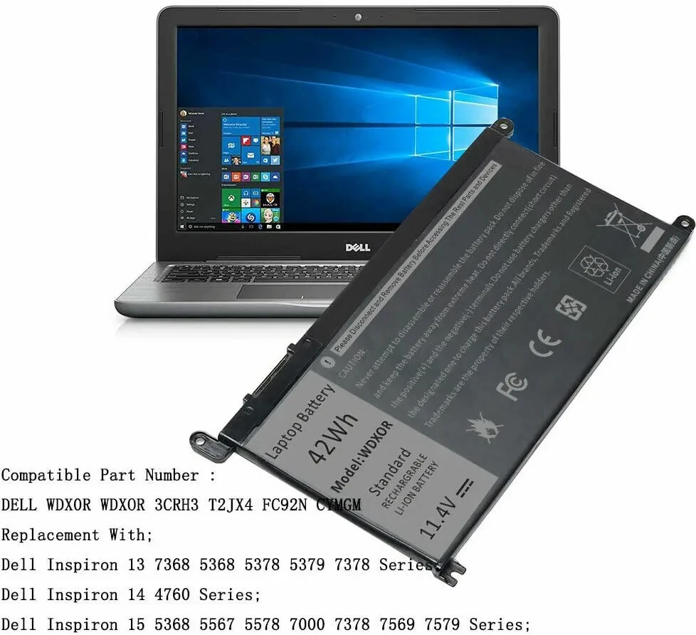 Compatible Model (Check description below for more models) Dell Laptop Battery WDX0R P69G001 3CRH3 FC92N T2JX4 C4HCW Y3F7Y Dell Battery 42Wh 11.4V Li-ion WDX0R Dell Battery Dell Inspiron 15 5570 Battery, Inspiron 13-7378 Battery, Inspiron 15-7579 Battery, Dell Inspiron 5379 Battery, Dell Inspiron 5567 Battery, Dell Inspiron 13 7000 Battery, Dell Inspiron P69G Battery, Dell Inspiron 7573 Battery, Dell Latitude 3340 3590 Battery, Dell Vostro 5568 5468 Series Battery.