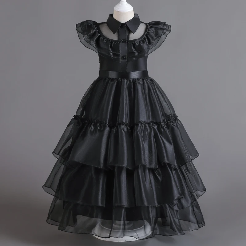 - Authentic Design: Features a classic black mesh dress with a white collar, capturing the essence of Wednesday Addams’ unique style.
