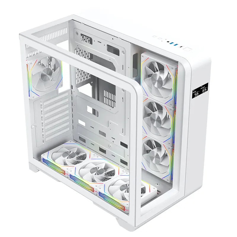 This premium case features an LCD digital display, providing real-time monitoring of system performance, and ensuring your gaming rig runs smoothly. The case supports an ATX motherboard, offering versatility and compatibility with a wide range of components, making it ideal for both novice builders and experienced gamers.