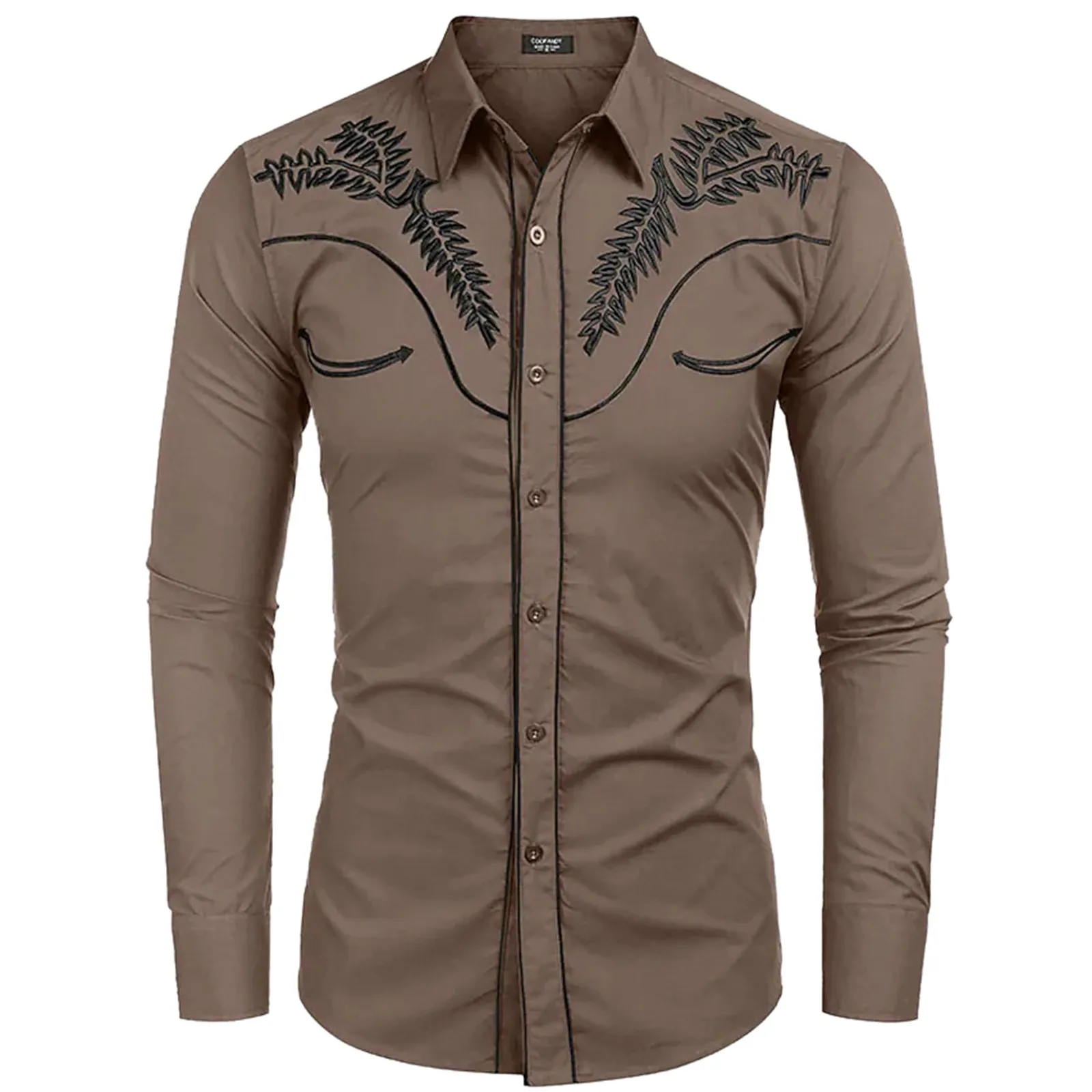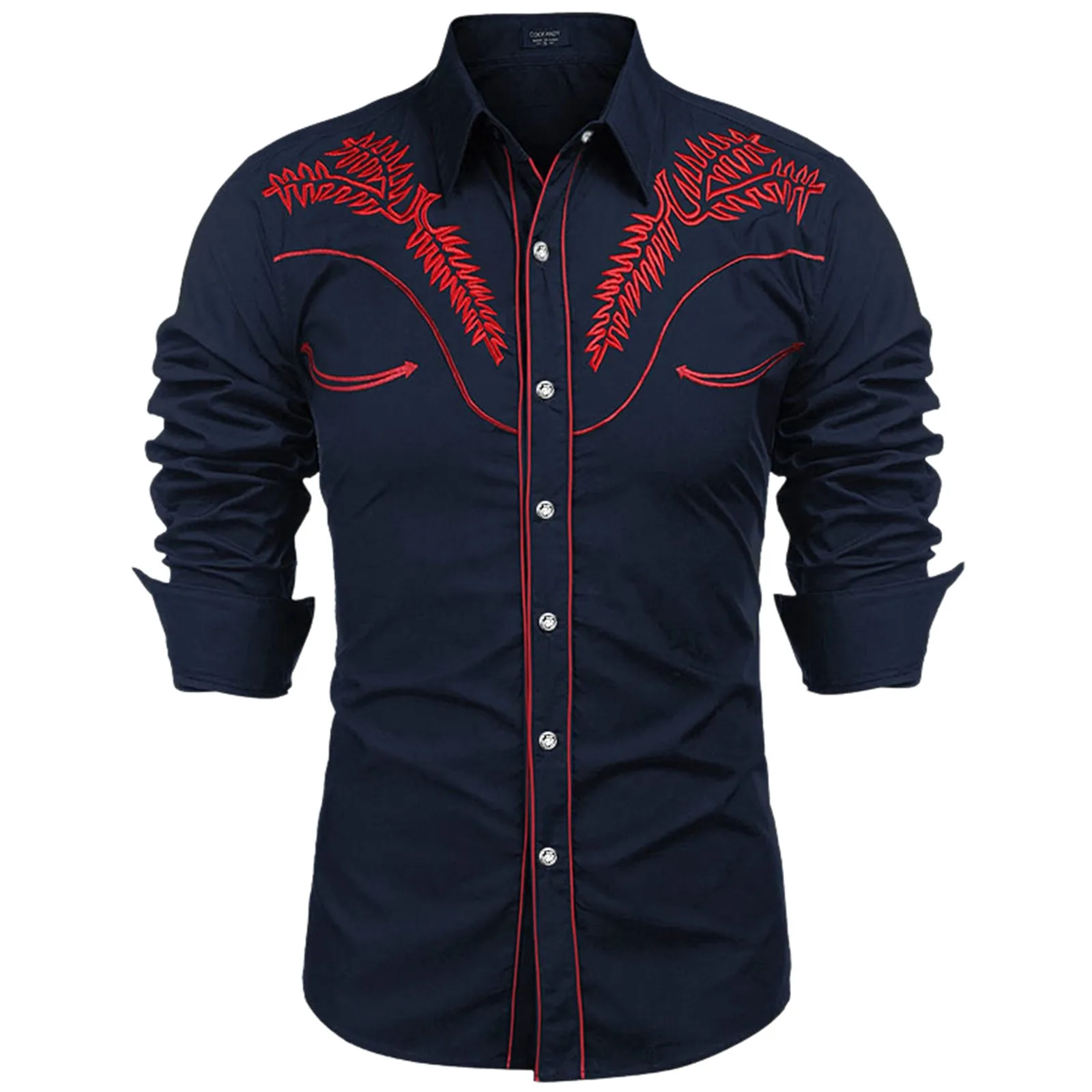 - Embroidery Design – Cowboy button-down embroidered shirt features beautiful and unique embroidery on the front and back, button-down closure, and no pocket design. Fine details make this dress shirt on-trend and eye-catching.