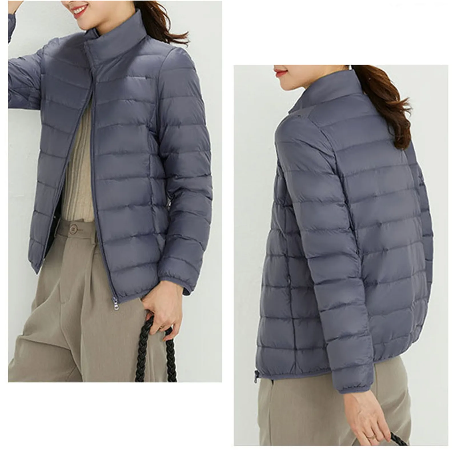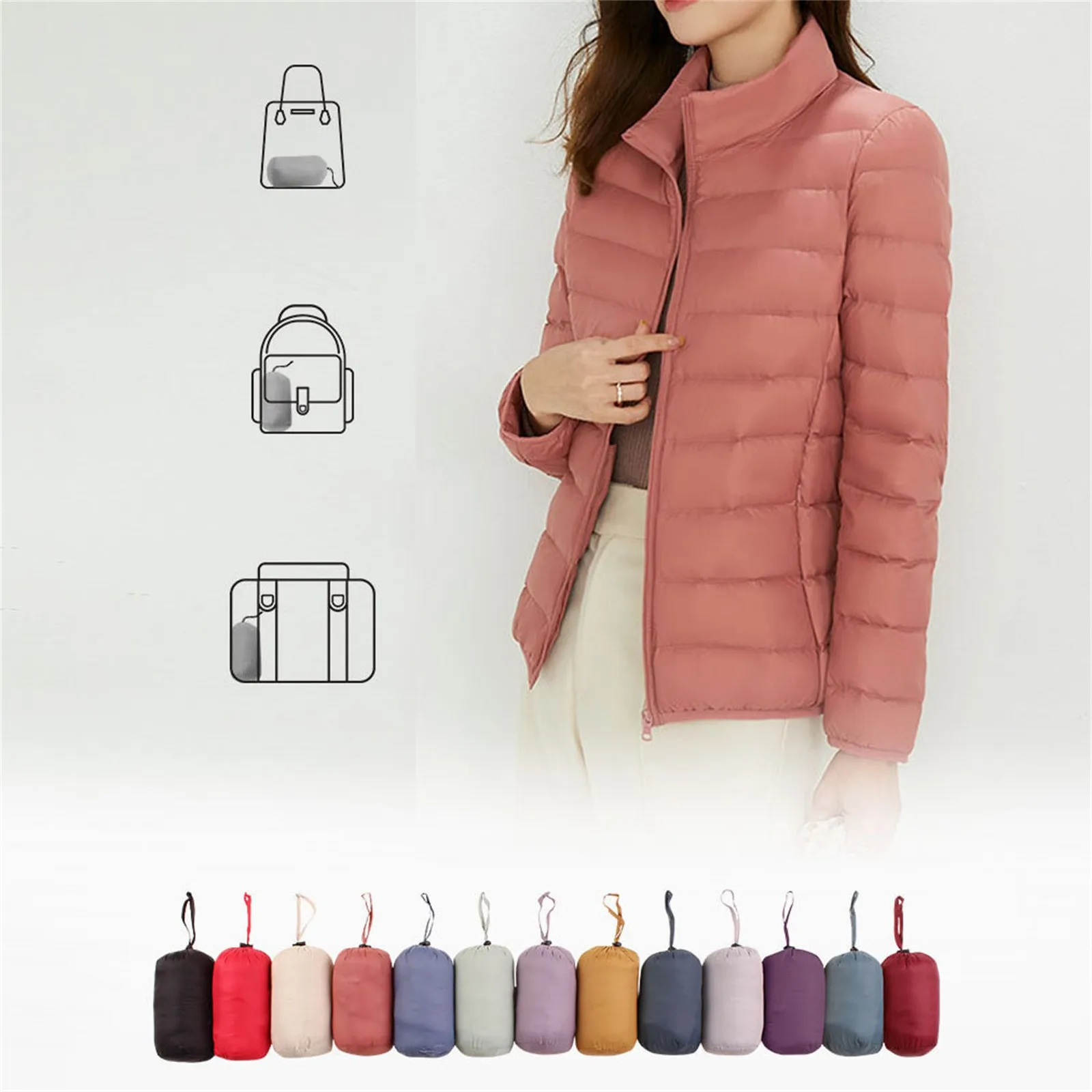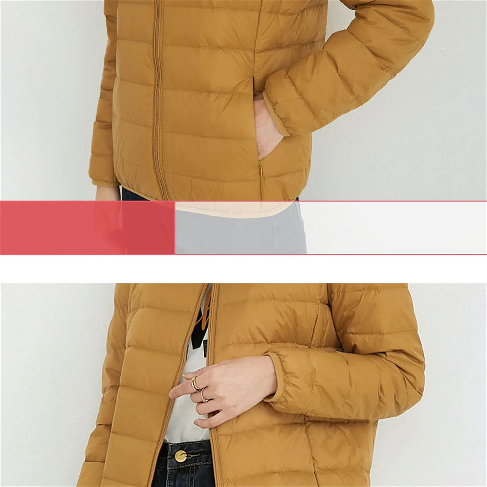 Ladies 90 White Duck Down Light Standing Collar Short Large Size Lightweight Fashion Coat
