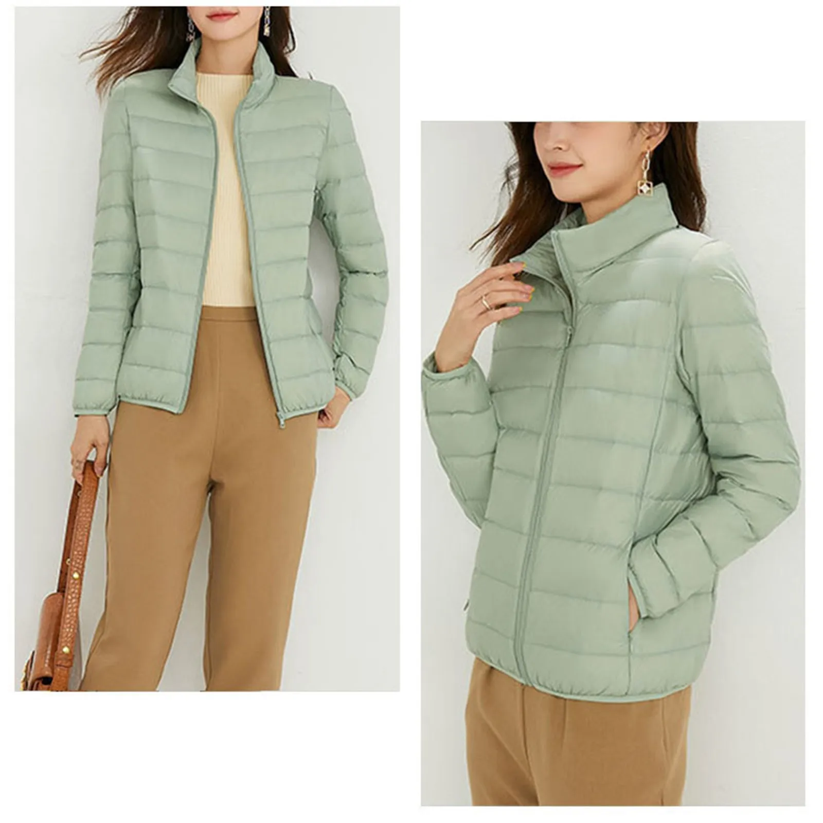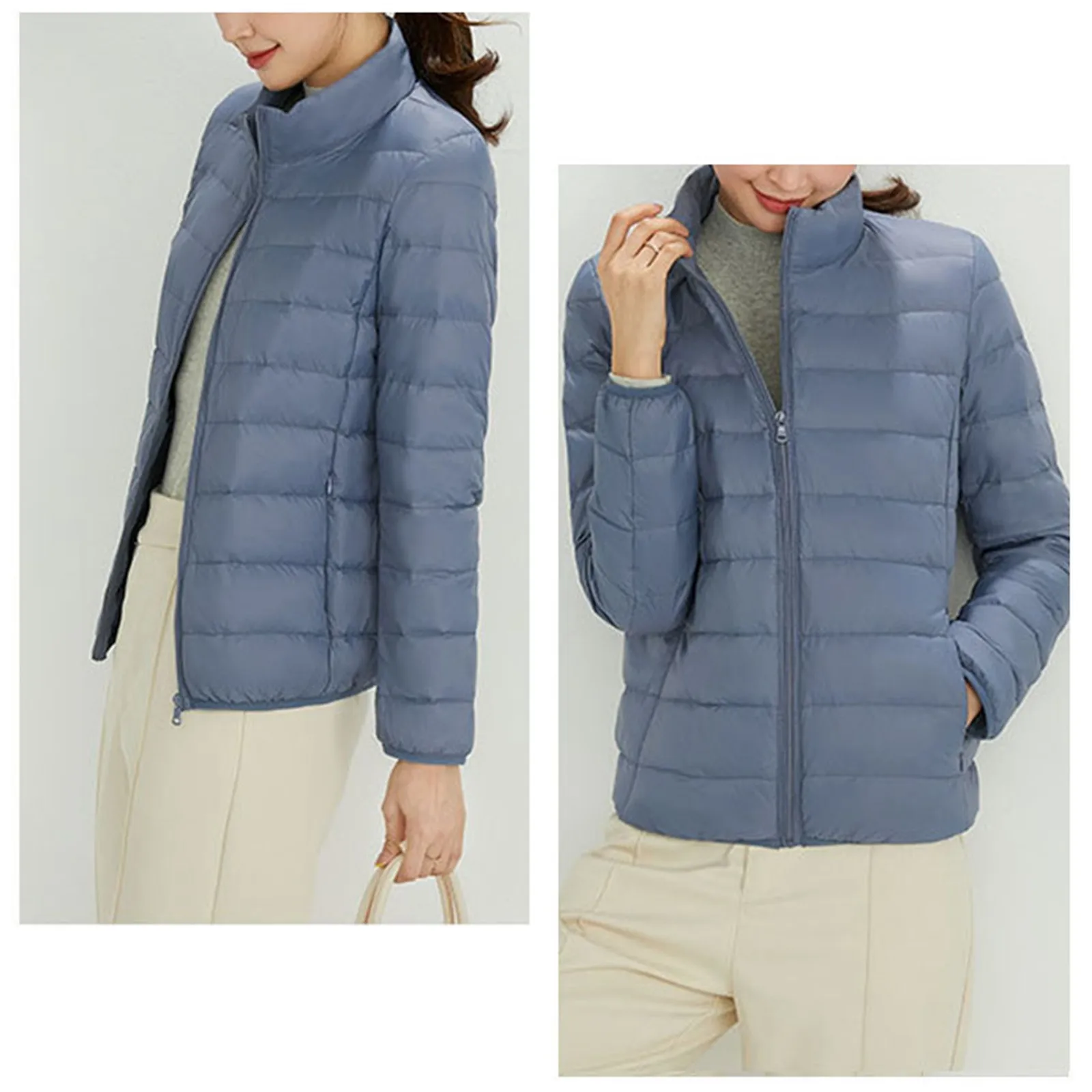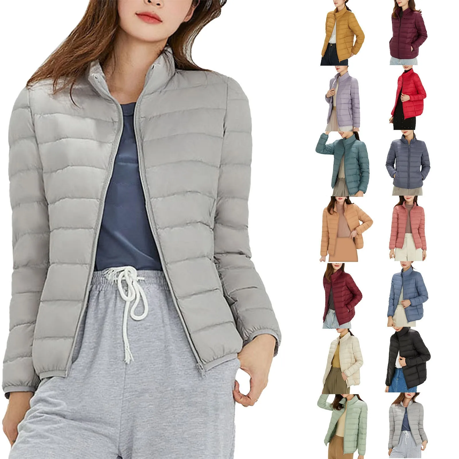Ladies 90 White Duck Down Light Standing Collar Short Large Size Lightweight Fashion Coat