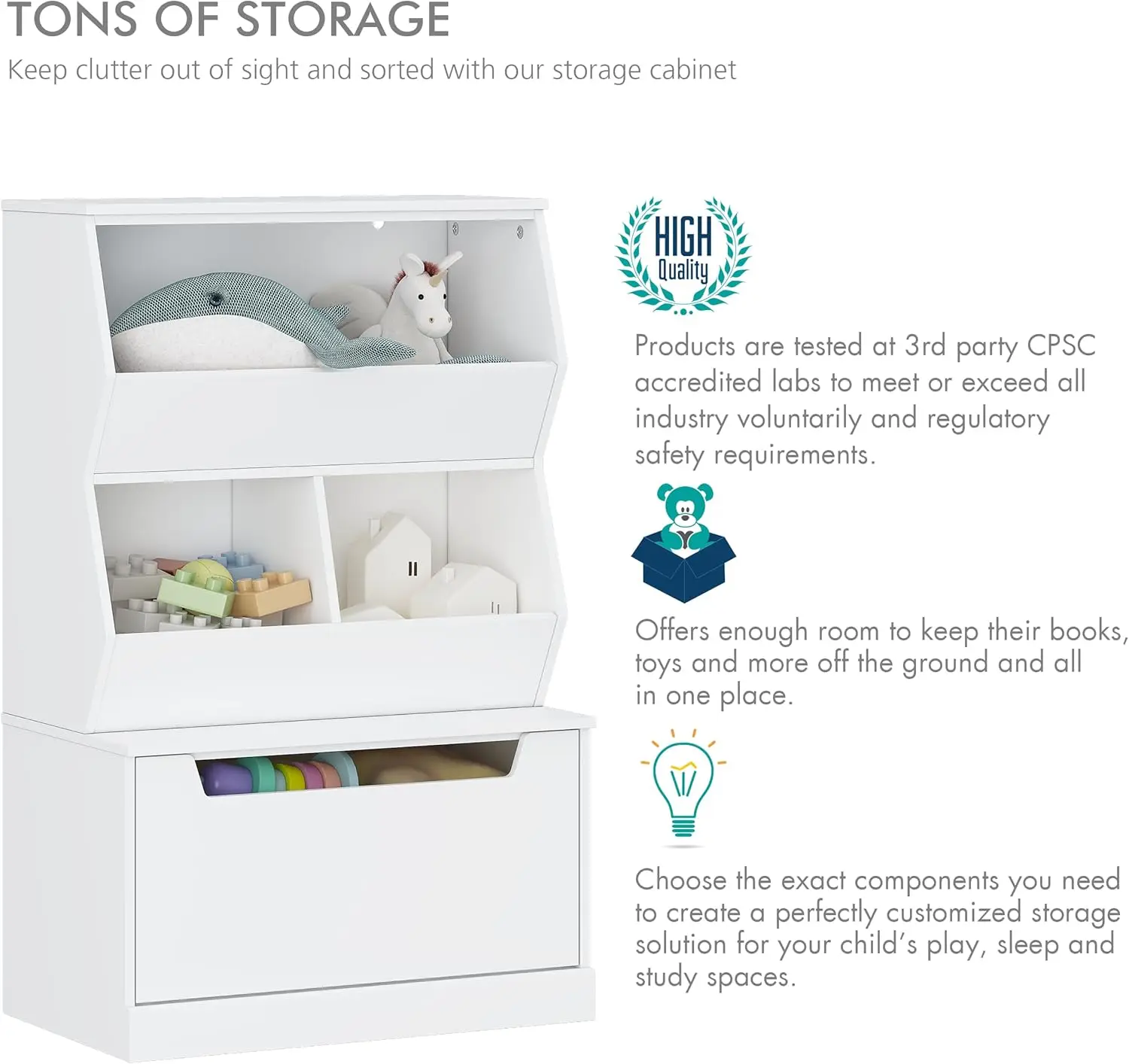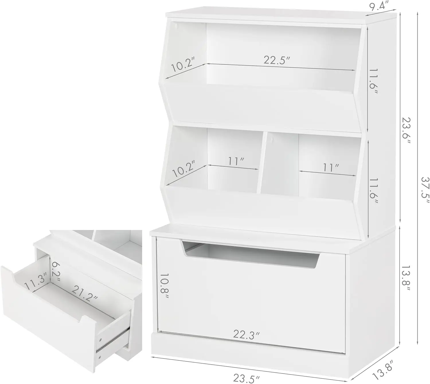 Ample Storage Capacity: Features three large removable cubbies for easy toy display and organization, plus a bottom drawer to discreetly store toys and supplies. Maximizes space efficiently in any room.
