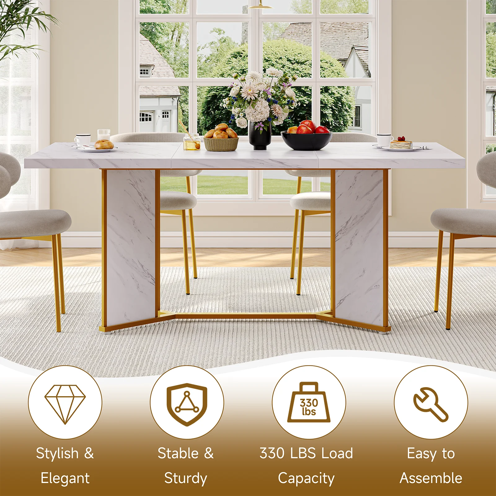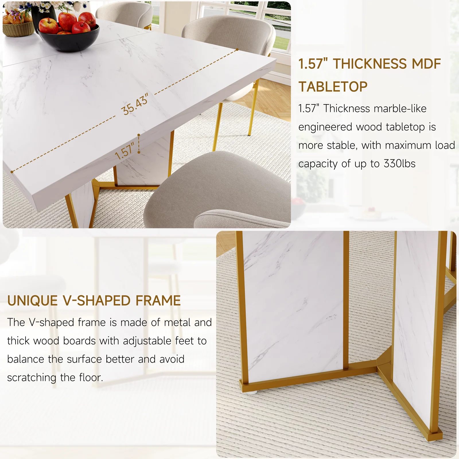 - Dimensions and capacity: This white rectangular dining table measures 71″ L × 35.4″ W and comfortably seats six to eight people, providing ample space for family meals and gatherings.