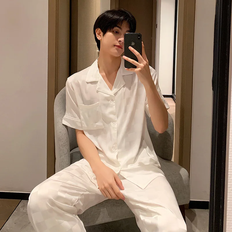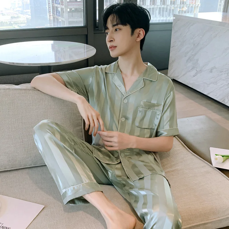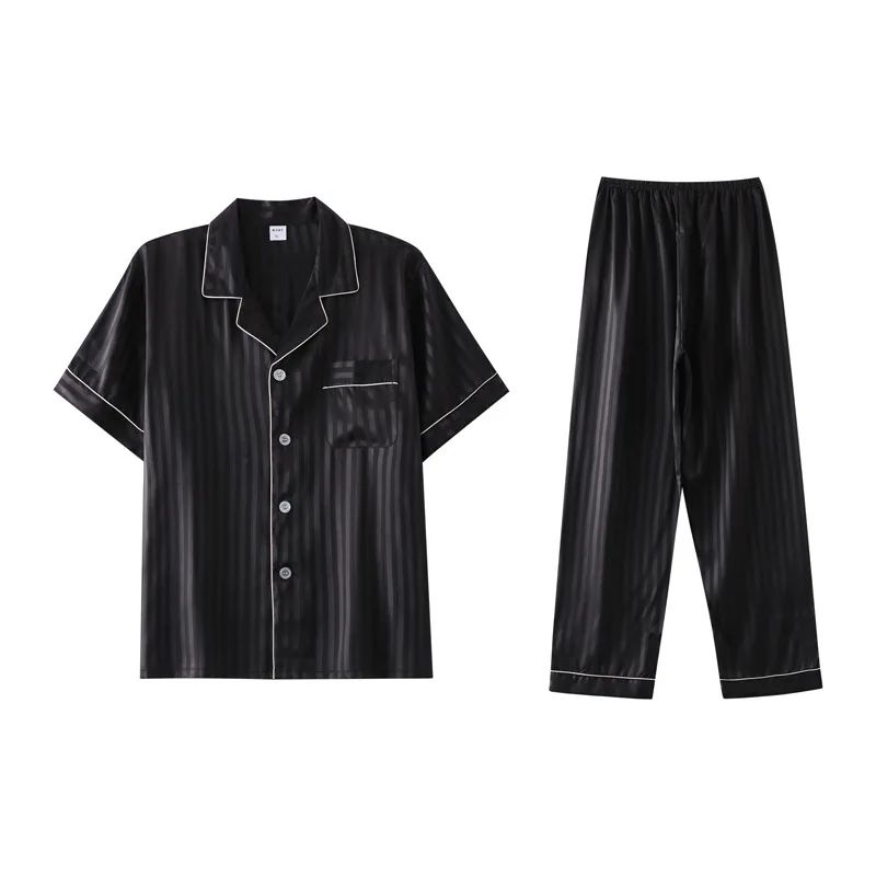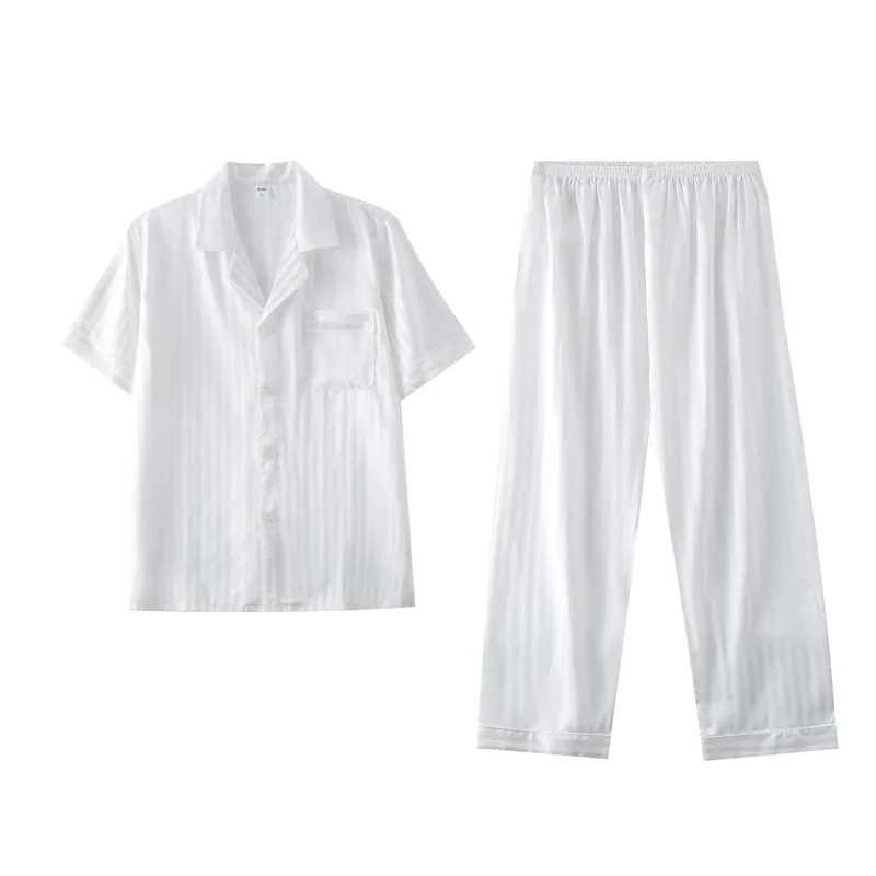 White Striped Satin Summer Pajama Set