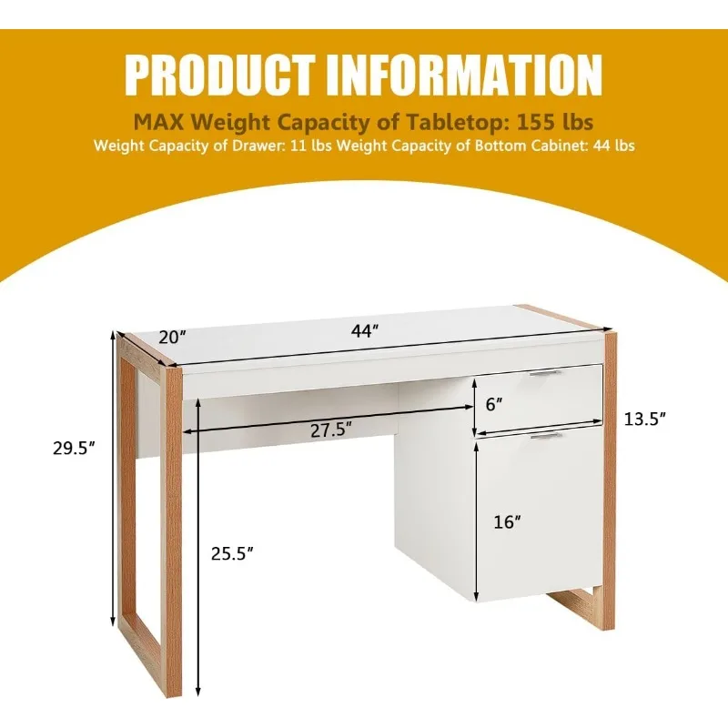 - Modern Design for Versatile Usage: The combination of white and natural wood showcases a modern stylish appearance. The simple yet elegant design will match different home décor. Whether used as a study desk, writing desk, or gaming desk, it will be satisfying.