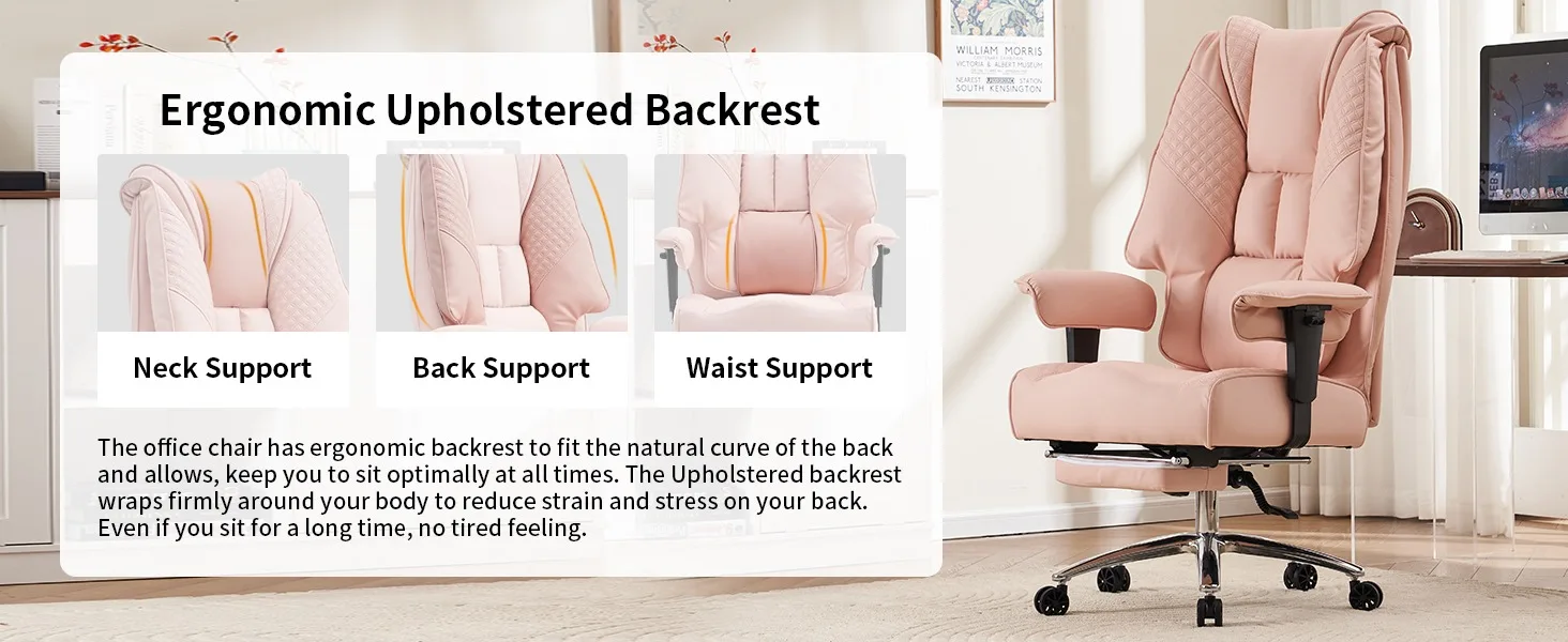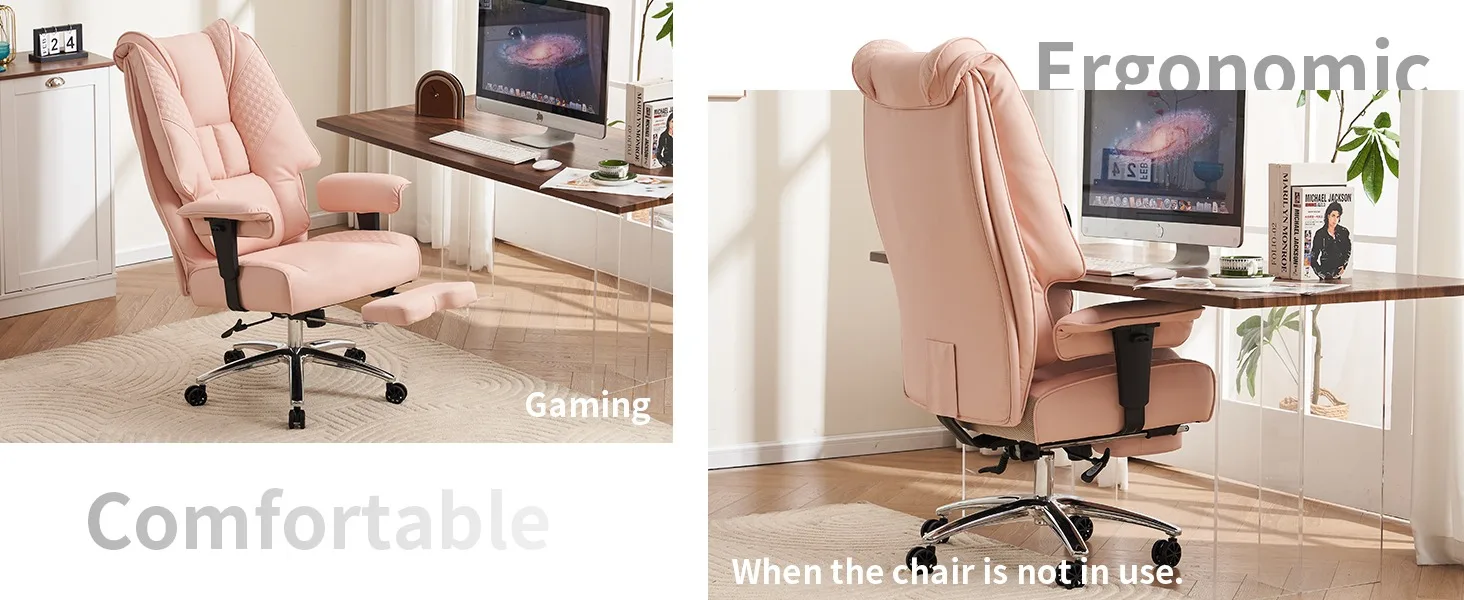 - Comfortable Design: The wide office chair features a thick, soft, and elastic sponge in both the backrest and seat cushion. The ergonomic desk chair’s unique saddle-shaped seat and wider backrest design ensure long-lasting comfort for extended work or study sessions