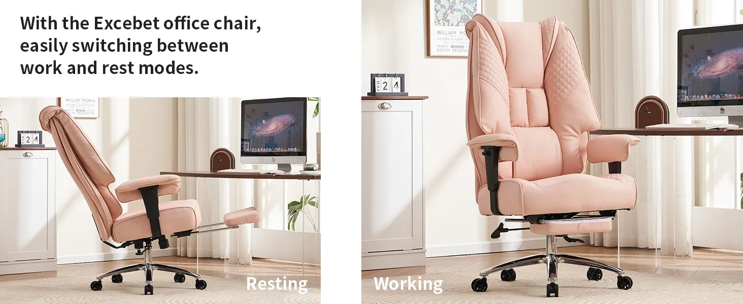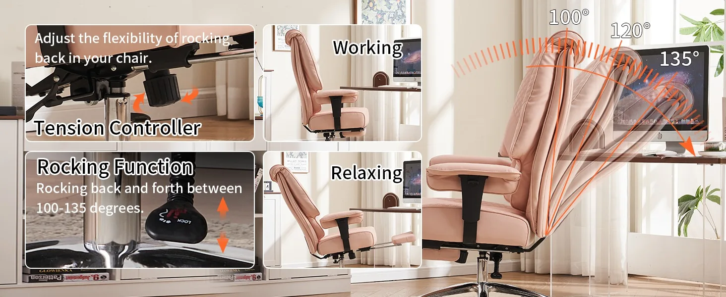 - Multifunctional Adjustability: With a robust 400-weight capacity, the reclining office chair offers adjustable recline angles, armrests, seat height, and a retractable footrest for a customized fit. Its 360-degree swivel feature provides easy access to your entire workspace