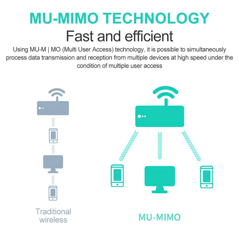 - Support MU-MIMO multi-device connection, improve network efficiency