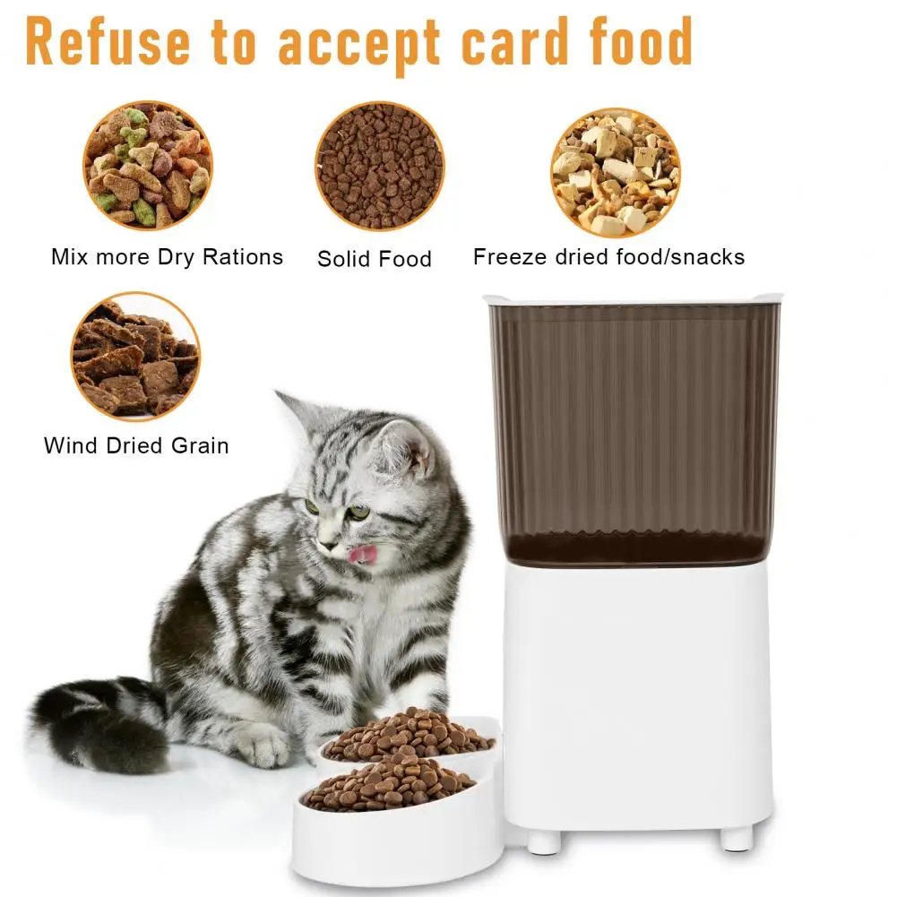 - 5L Sealed Bucket and Dual Power Options: The 5L transparent sealed food bucket keeps the food fresh and moisture-free. It supports both battery operation and USB power, so it works even during power outages.