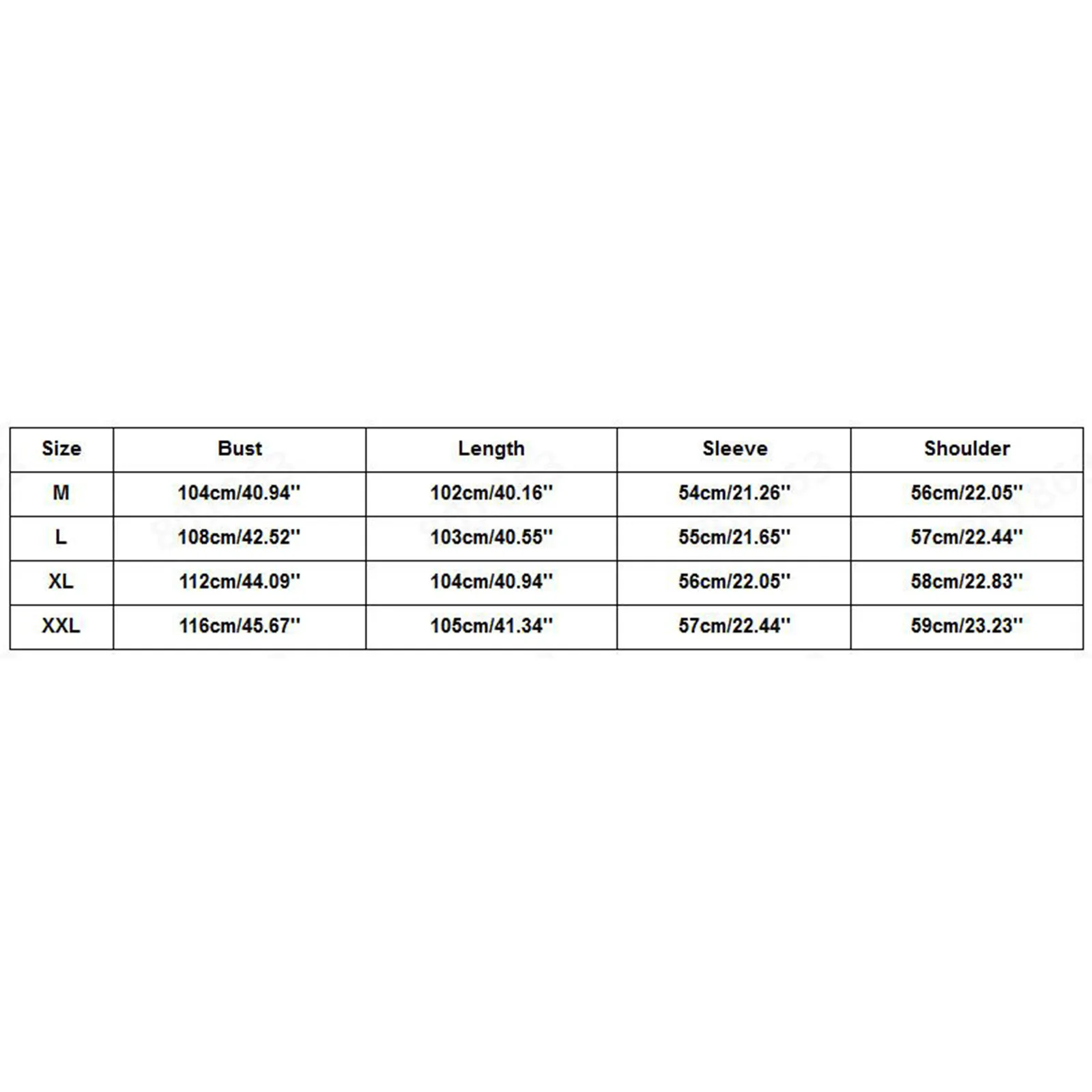 - Medium (M): Bust – 104 cm (40.94 inches), Length – 102 cm (40.16 inches), Sleeve – 54 cm (21.26 inches), Shoulder – 56 cm (22.05 inches)
