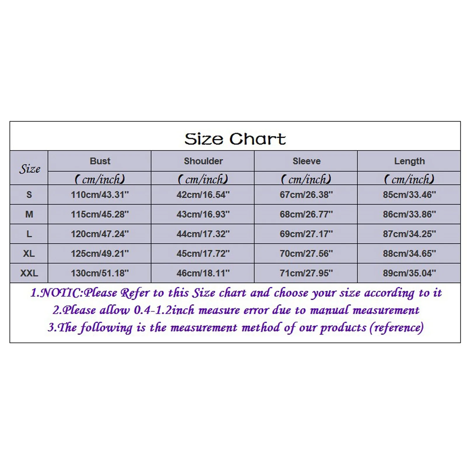 XXL – Bust: 130cm/51.18” | Shoulder: 46cm/18.11” | Sleeve: 71cm/27.95” | Length: 89cm/35.04”
