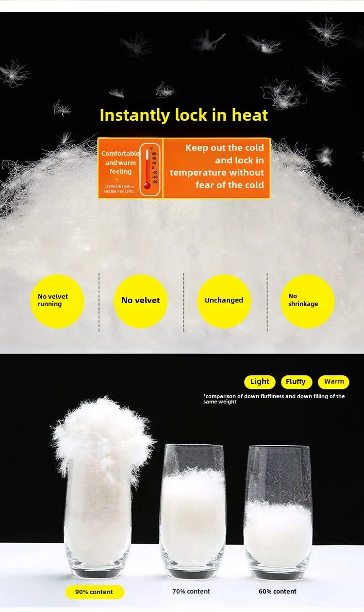 • 90% White Duck Down: Crafted from 90% white duck down, these pants offer superior warmth and comfort, perfect for the winter season.