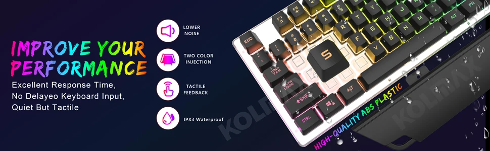 - Durability: ABS keycaps with double-injection legends that resist wear; supports up to 50 million clicks.