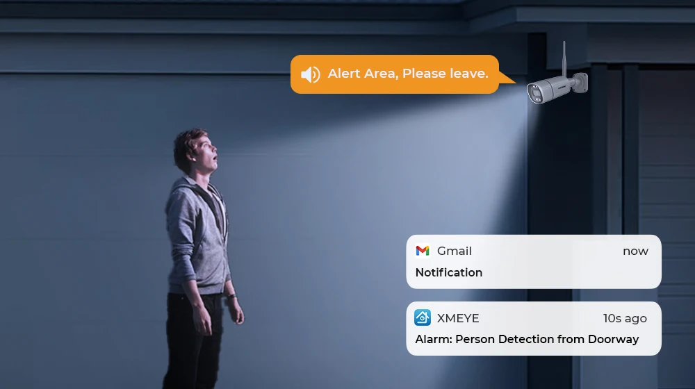 Once an intruder is detected, the camera’s spotlight and voice warning are triggered to alert potential criminals. And push alerts to your mobile device and email.