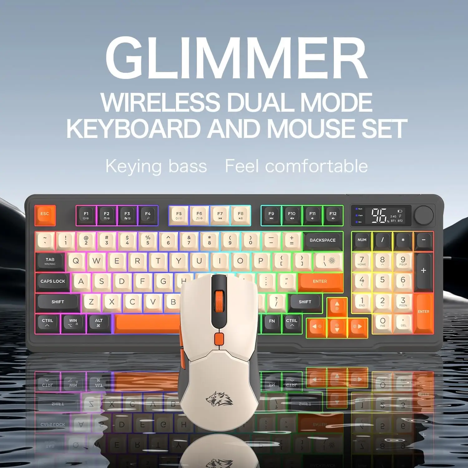 Meet the T96 – a stylish, high-performance wireless keyboard and mouse set designed for gamers, coders, and creators who demand function and flair. With bold triple-color keycaps, a display screen, and dual connectivity, this combo brings premium features to your desk without the premium price.