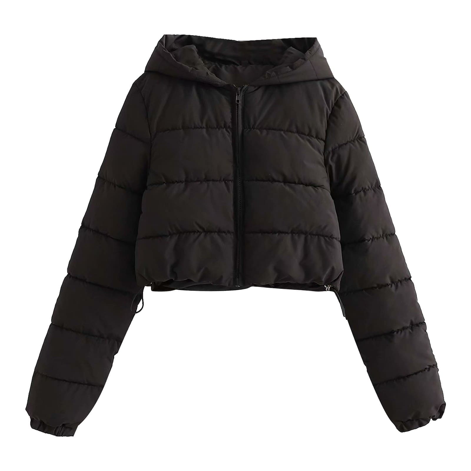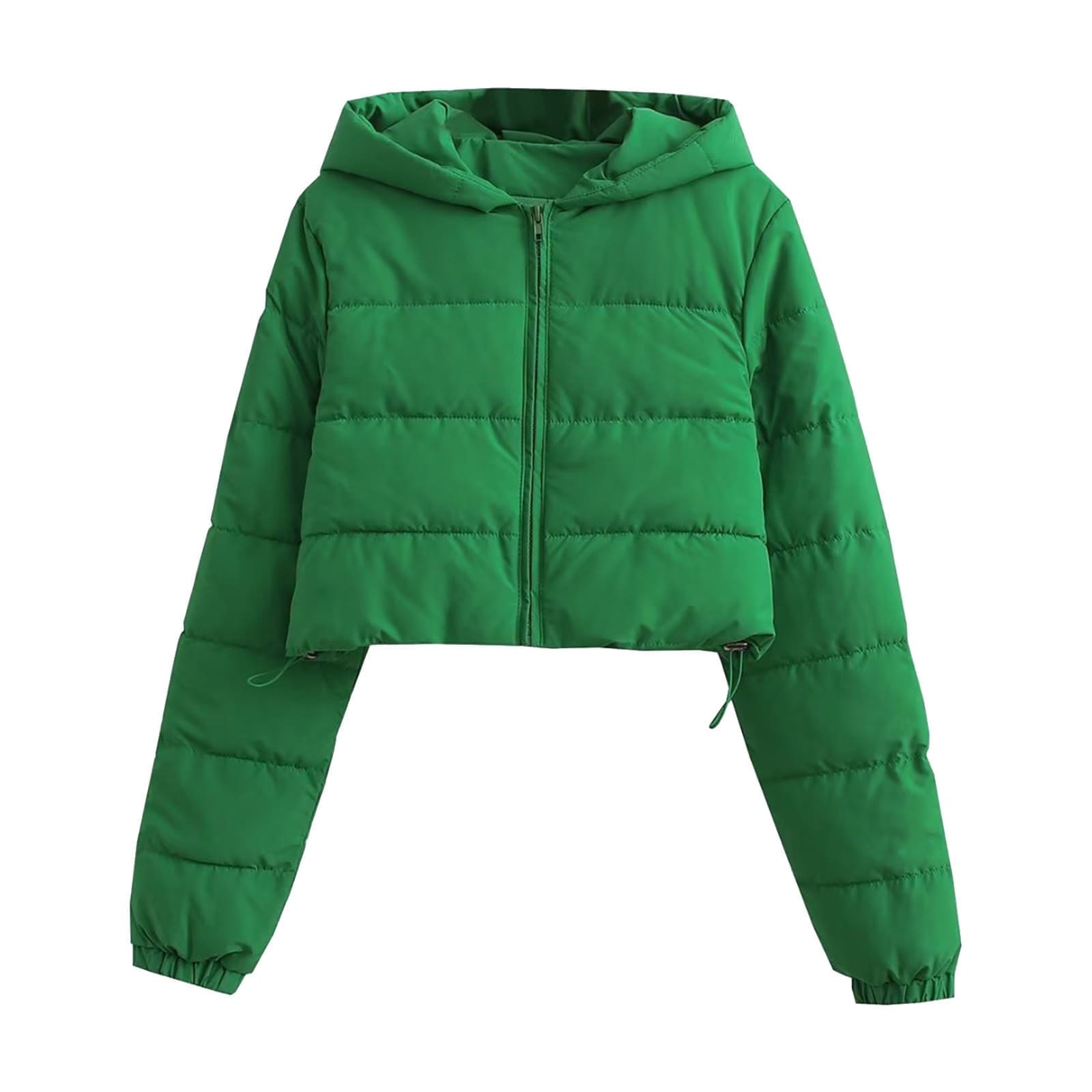 Womens Cropped Puffer Jacket Winter Warm Hooded