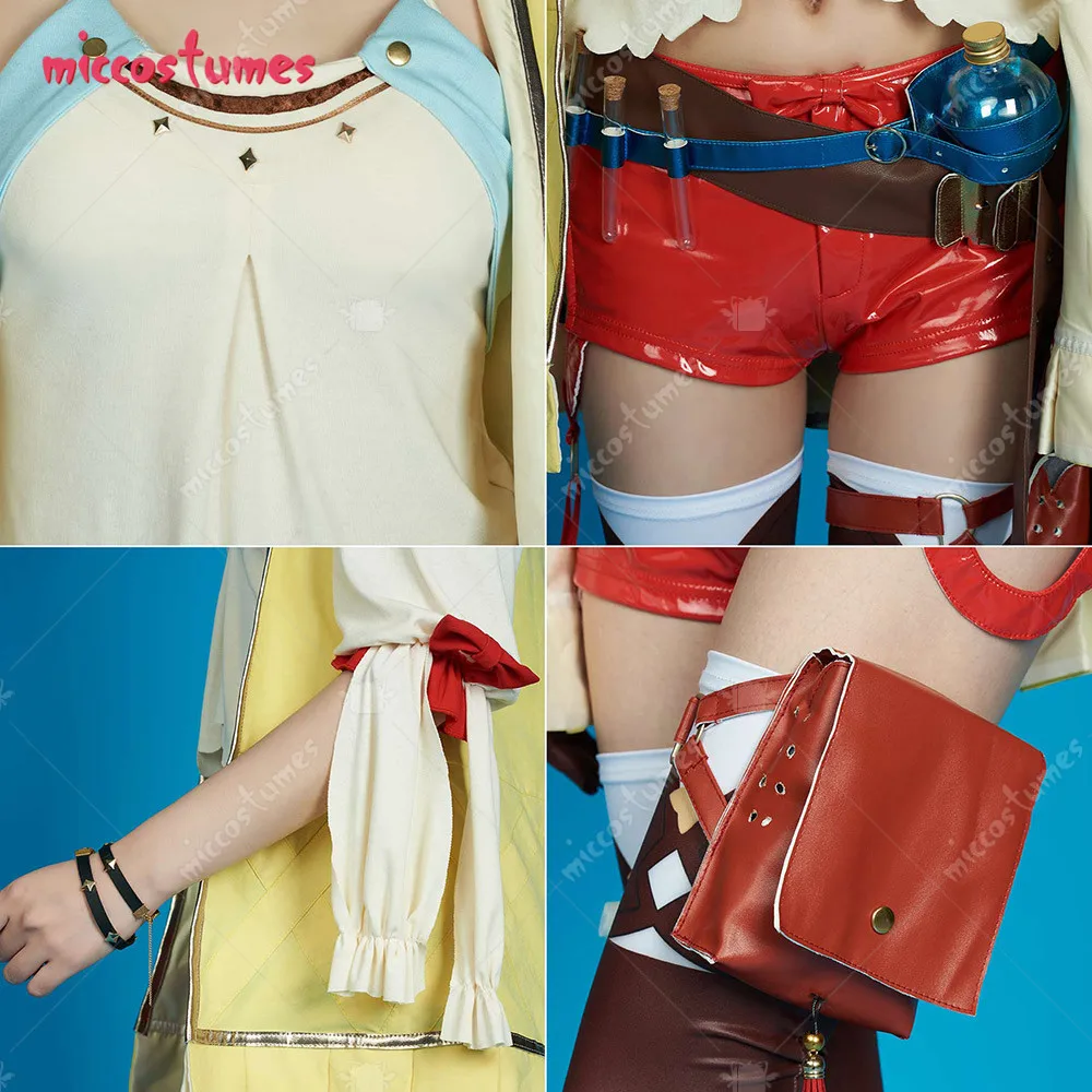 - Included Items: Coat, shorts, top, hat, sleeve x2, glove, blue belt, coffee belt, leg bag, necklace, arm ring x2, bracelet x2, hair clip, test tube x3, bottle, socks