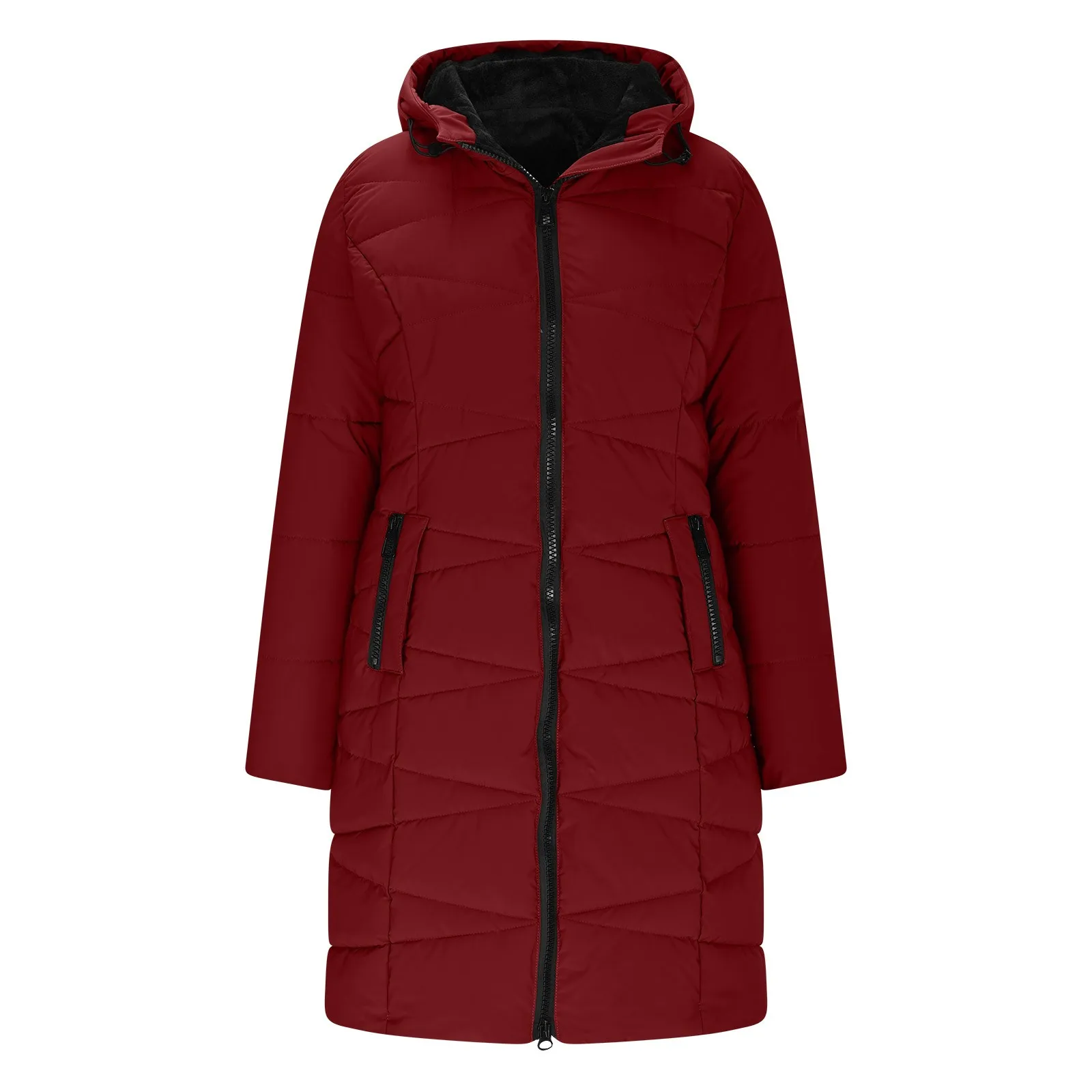 Women’s Mid-Length Down Coat – Hooded, Fleece-Lined for Warmth & Comfort