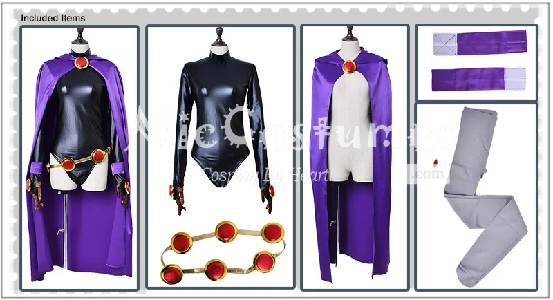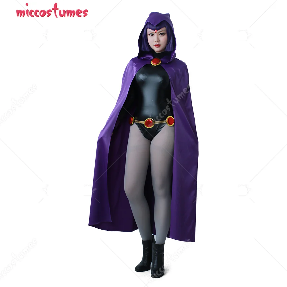 * The DC Teen Titans Raven costume features a purple hooded cape and the skin-tight black jumpsuit underneath. Does not include a wig or shoes.