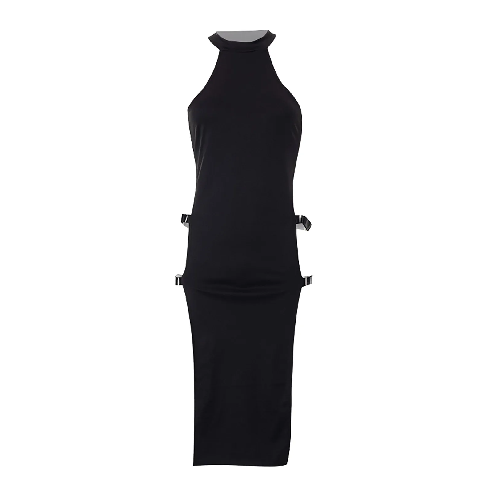 Design: It features a sleeveless cut with a hollow-out pattern and a side split, emphasizing elegance and allure.