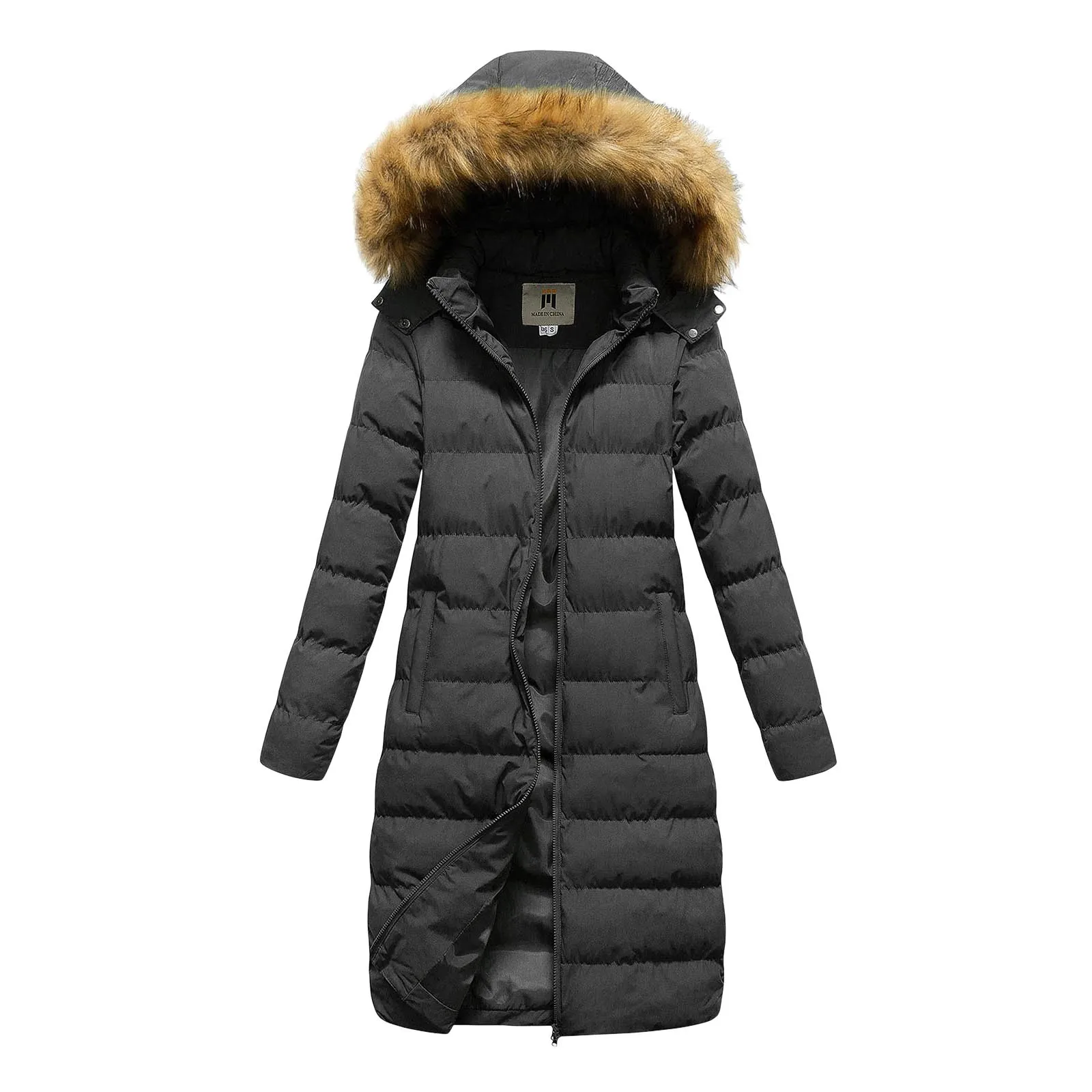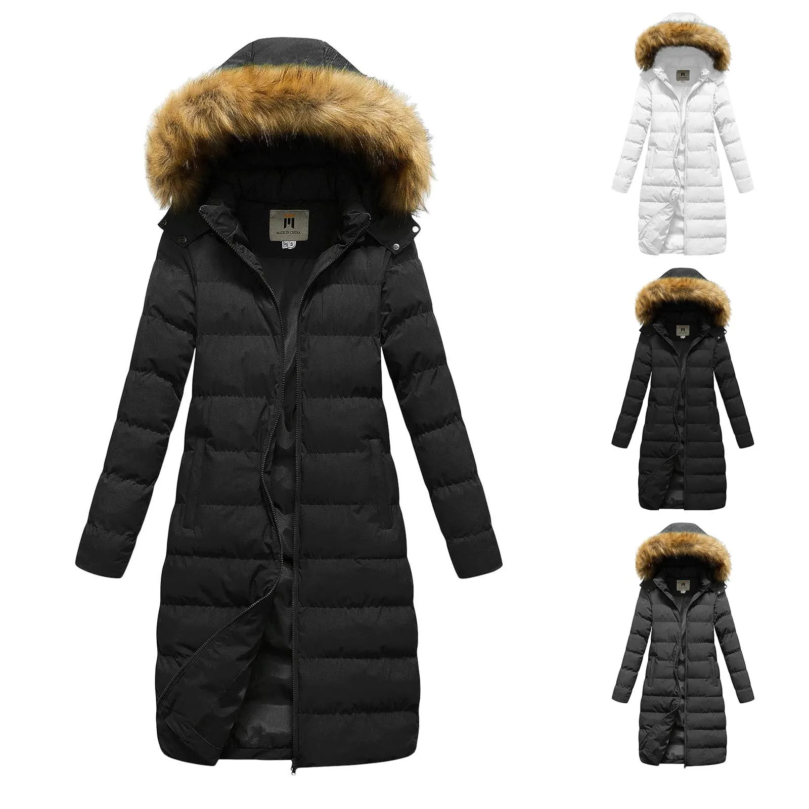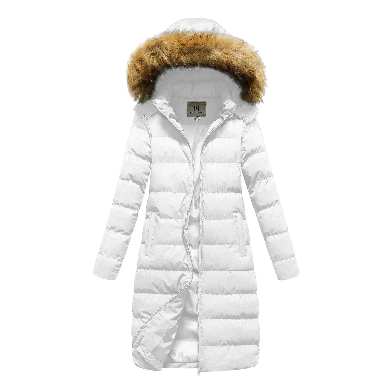 Womens Winter Faux Down Jacket with Detachable Hood